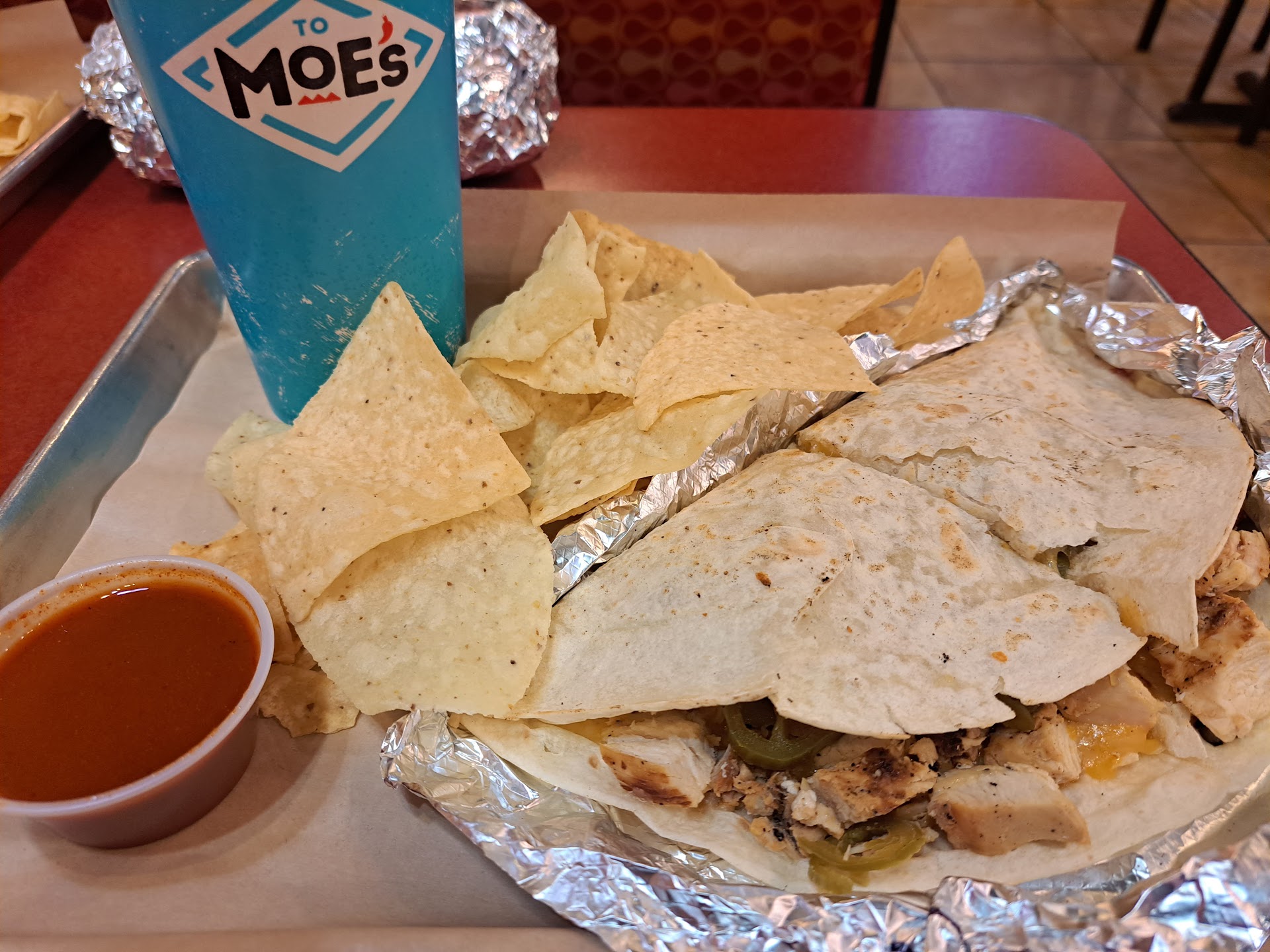 Read moreI am so angry. I came tonight to get a chicken and cheese cassadilla. I wanted extra veggies. I got a little tiny bit. 4 onions and 3 green peppers. To be exact. I would have paid for extra. The girl was so knew she didn’t know what to do. I was so frustrated. I’d tell her what I wanted and she looked at me like a deer caught in the headlights. Train your people. I’m from out of state. My Moes in Savannah, Georgia is way better. They care about their customers. You guys act like they have no idea why they are there or what to do. I’m so angry!!!unless I was treated this way to make me not want to come back. I didn’t want to give you one star. The coke tasted good. That’s the one star. I love Moe’s. You guys messed it up bad. I will not recommend. My grandson and I used to eat at your place on lunch breaks. I don’t think I will anymore. You need to train your staff. And be nice. Not act like your customer is interfering with...