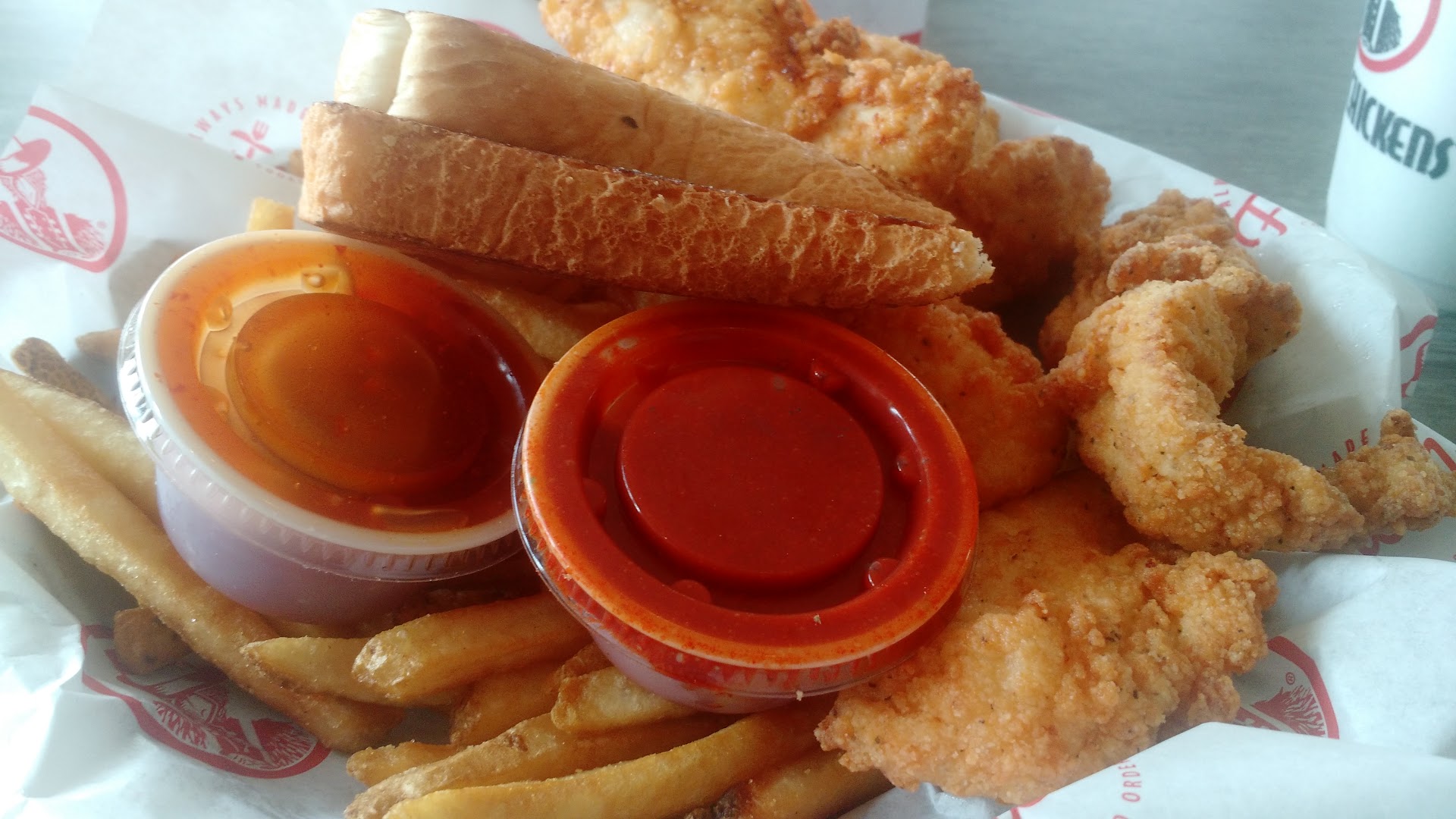 When I was here I got the hungry meal, which got me (7) chicken tenders, fries, two pieces of garlic toast, and a drink.