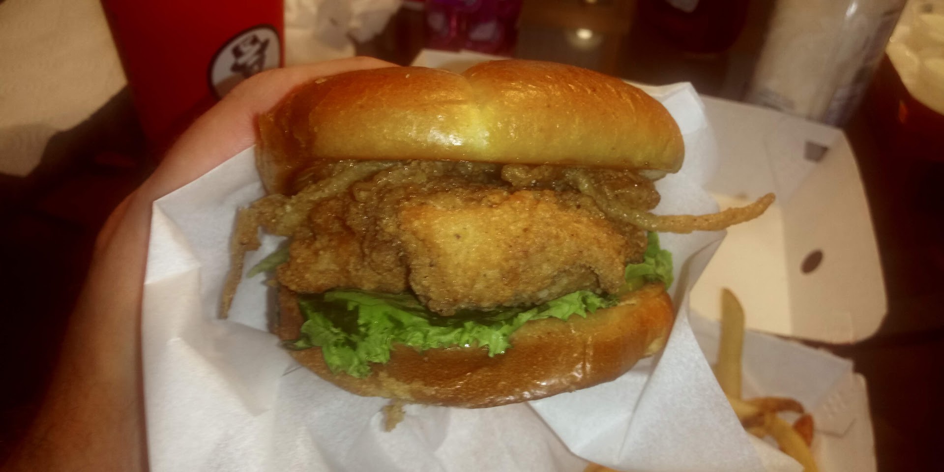 The fries were regular run of the mill fries, mine weren't crispy or cold, just, mediocre, which is okay, because the toast and the chicken more than made up for them.