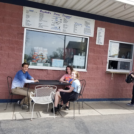 The Baseball Dairy Diamond offers a delightful outdoor casual family dining atmosphere with umbrella tables in the front and many tables & chairs in a large designated dining area located on the south side of the building. There is also a cute photo opportunity as they have a giant rocking chair on site. The menu is an extensive offering of all your sport & summer favorites! Pizza, many types of fries, fried mushrooms, hamburgers, hotdogs, tater tots, nachos, slushies, ice cream and much more and don't forget to check out their lunch specials. A little on the pricey side so choose wisely if you have a large order. We ordered 3 Rootbeer Floats. The floats were a perfect blend of rootbeer and ice cream. Very very tasty! The only issue we had was, the base of the cups were somewhat flimsy and so was the drink carrier. In fact, the cups were too tall for the drink carrier we were given... Now this will not affect most people as most people don't leave the premises with their orders so taking your order from the window to a table shouldn't create an issue like we had. Don't let that stop you from taking the Team or family to enjoy this menu and atmosphere at least once... because there aren't many places that you can get all your favorite big ballpark menu options... without the...
