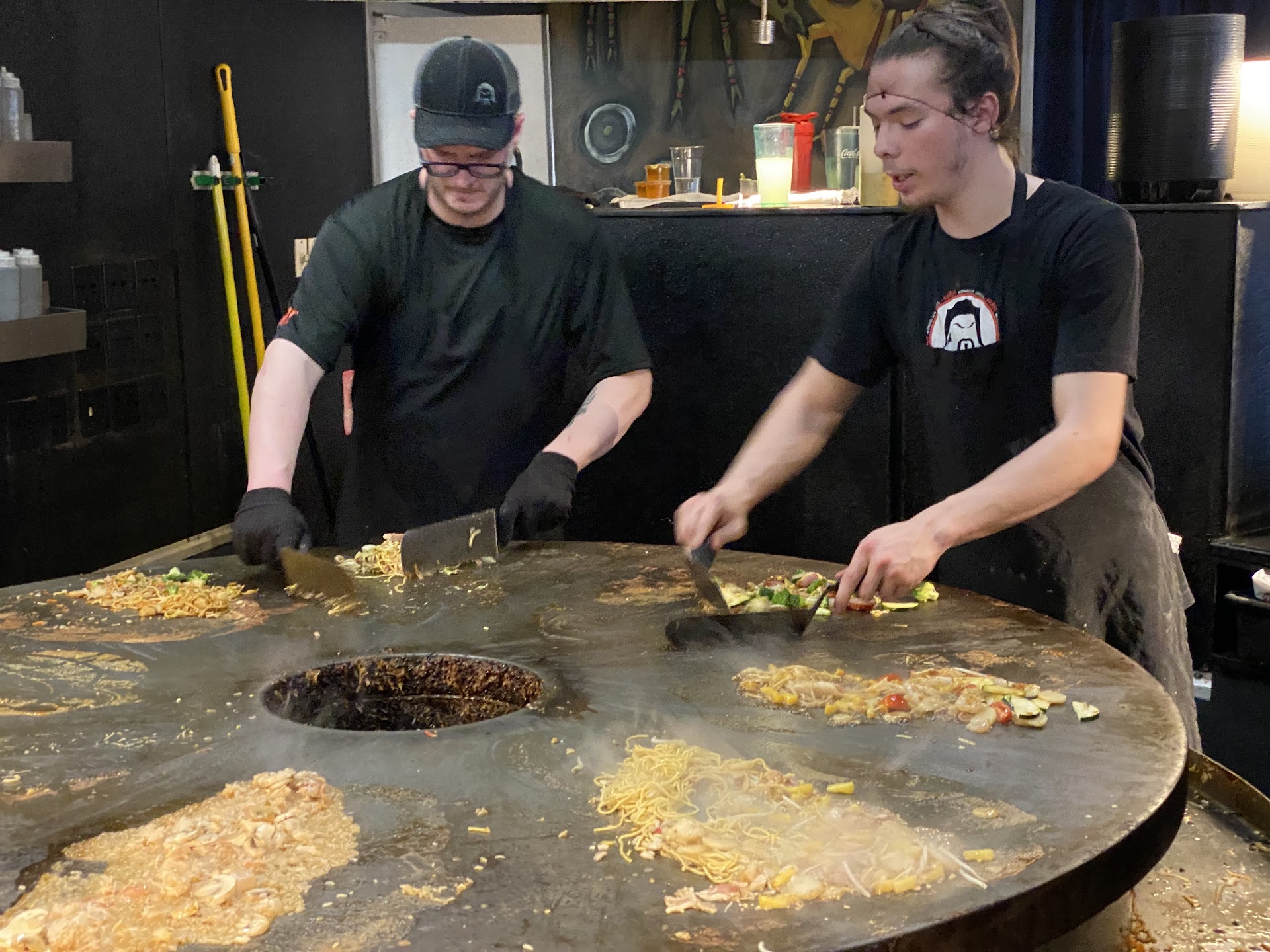 Alright, so I really hate this. I don't enjoy leaving negative reviews. I will be exacting and without any opinion value. Let me first state, we went on what was most likely an unordinarily busy evening. So give them that much. Secondly, our server was fabulous. There is no way they pay her enough for her attitude and her energy. She was around our ages, not a child, and was one of those perfect personalities made for facing the public. Thirdly, I can only assume they are as short handed as everyone else right now. I really am trying to be generous. And here comes the reason for the 2 stars, note that I did rate the service as a 5, but that 5 applies to the servers alone. Not the grill hands. Not at all.. first off, I get it. The public for the most part is nasty, but wow.. I ha e been to little Mom&Pop Asian food establishments where the owners regularly walked the bars to wipe them. However there was 0% effort here. The attendants bringing fresh sauces and oils were every bit as awful as anyone there, I watched one kitchen hand literally slosh and dump an entire new amount into an old bin, nit replace it and spill a little, but splashed and sloshed it into the bucket already mostly used and it went all out the sides. Not that anyone would notice with the puddles of splashed and spilled sauce and oils all over the place. Honestly, that was most likely his thinking as well, "Who's even going to notice?" I first took 3 bowls of noodles and one large bowl of rice to the grill, they were our children's meals. I watched them pour the bowls out, and then walk away.. now, again, they were busy and vocally frustrated. I get it. But 3 minutes later one of them simply scraped off the noodles onto a plate, then the rice, handed the plates to me woth an excited and energetic, "Here you are sir, enjoy!" As if they hadn't just let it all sit there and never touched it to toss or stir, just dried out and heated up. That was it. I was very polite and thanked him just the same. My wife got her plate and I do not honestly know her experience. I went to get my plate, and a few of the breaded chicken and sausage slices for the Ewoks as well. They covered the chicken with water and let it sit under a plate until it was good wet and slimy, then scraped it into a plate. My noodles and meal were done very much the same as the Ewoks. Burnt, scraped off, barely touched, they shredded the meats I put into my portion, then scraped off onto a plate and served with a smile. When I sat down to eat I realized the onions were spoiled as well, so I picked them out. The floors were atrocious. Some customers showed up already drunk, and of course purchased another beer that they carried through the food bar while making their portions to take to the grill, and the conversations between the associates working this evening were of complaints, frustrations, arguments between one another and once they did their happy birthday routine for someone. That was neat. I do not honestly know if I will return here with my family again. I do however tend to try and give places at least one extra chance. So...