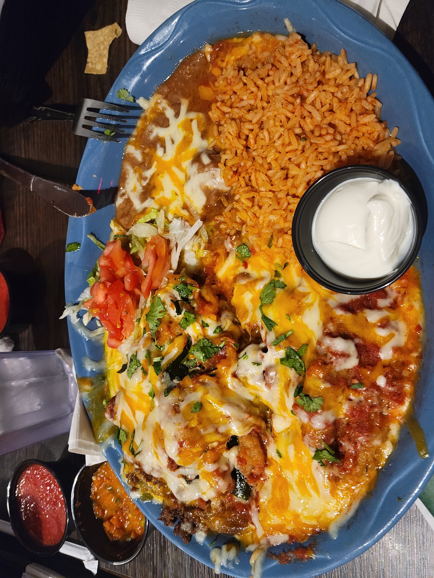Read moreIt's a rare occasion that I complain at a restaurant. Even more rare is that I post a complaint. Our experience here was terrible this time. The only saving grace was the food. It was packed. Twenty minute wait wasn't terrible. A little cold but not that bad. We get seated in the bar area after waiting out in the lobby area. Okay, fine. . . People who are waiting for tables begin piling into the bar area. This is also where the waitresses come and go with food. People are three rows deep at the bar and they're bumping tables where other folks are trying to eat. Like my wife and I. I asked the waitress what was going on and why there were so many people and she replied that they're just really busy but something should be done about all the people in the way. The waitresses are constantly trying to squeeze by these folks who act like they're the only ones in the place, flipping their hair into the food as it goes by... Lucky for us we were close enough to the kitchen entrance to avoid the random hair treatment and our food came out follicle free. My macho chimichanga was like I remembered. Well seasoned and crispy. My wife almost enjoyed her fajita chimichanga, but was worried someone was going to knock us over. The place is packed and getting worse. I've finished my meal but my wife is too stressed to finish so we get boxes to go. We pay the waitress and get ready to leave...I can't even get enough room to put my wife's coat on her. There was no way out, except through the kitchen. I walked back that direction and a guy asked if I I needed the bathroom. No, I need a way out. Look at that.. He went and cleared an area for us to get our coats and get out. It was ridiculous and very unprofessional for the staff to allow this type of...