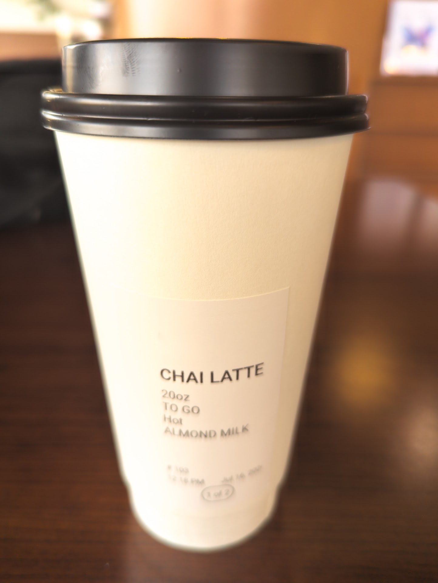 The coffee is decent, though not a lot of wow factor for the price. I got a chai latte and a dark roast coffee. The chai was good, and the coffee was okay. I also got an onion and mushroom kringle, which was decent. Bonus points for having clearly labeled vegan options, though!