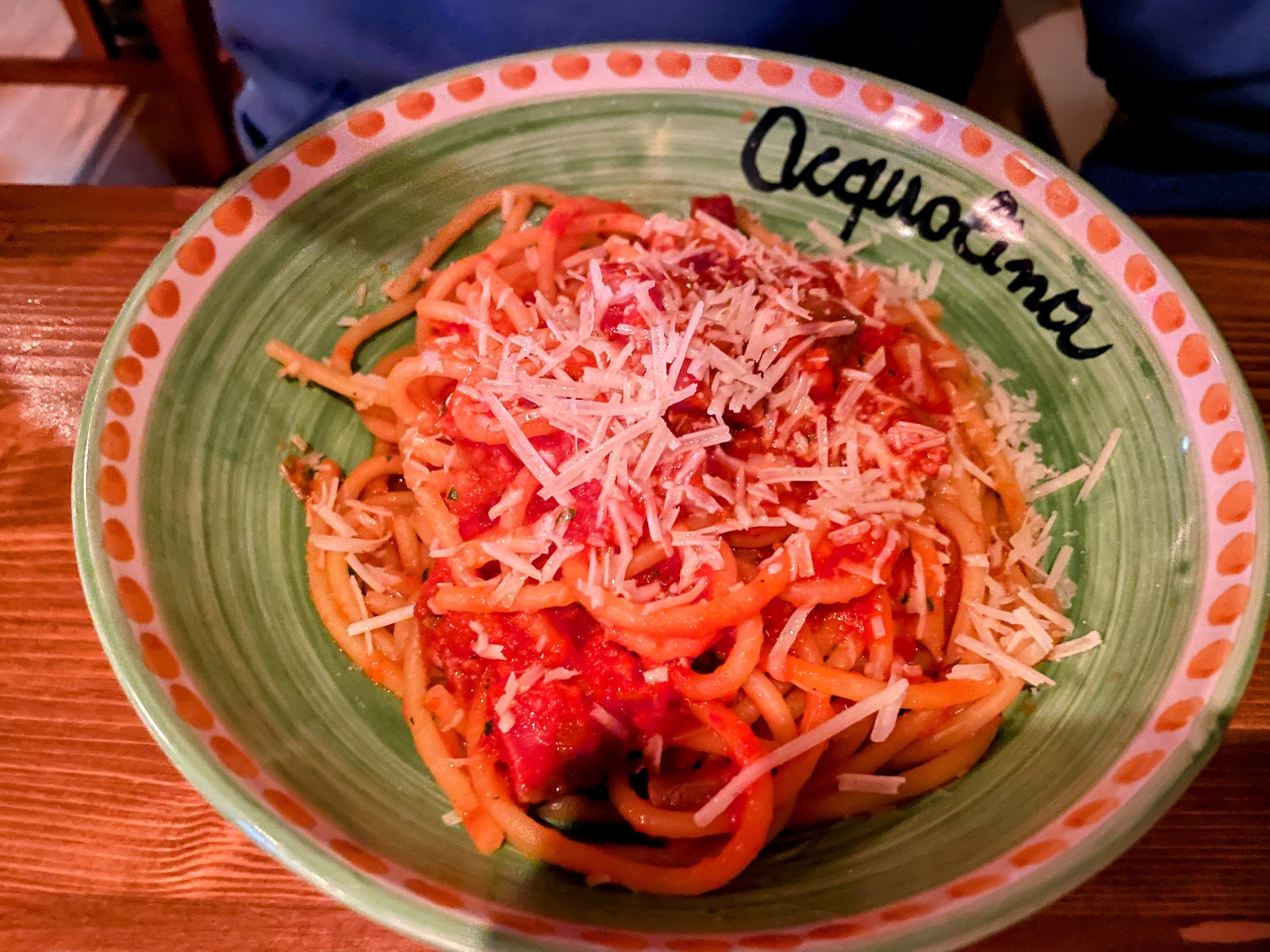 The food was okay, I think this waiter definitely took away from the experience overall so we didn’t enjoy it as much. For appetizers, we had the Rollino which the whole table liked. We also had the Bruschetta which was overall very dry and lacking flavor. For Dinner once we were finally able to order three of us had the Rigotoni, the others felt it was okay/good. I found the mushrooms to be a bit soggy. We also had an order of Orecchiette at our table, which was very very dry and went unfinished by a very non-picky eater.
