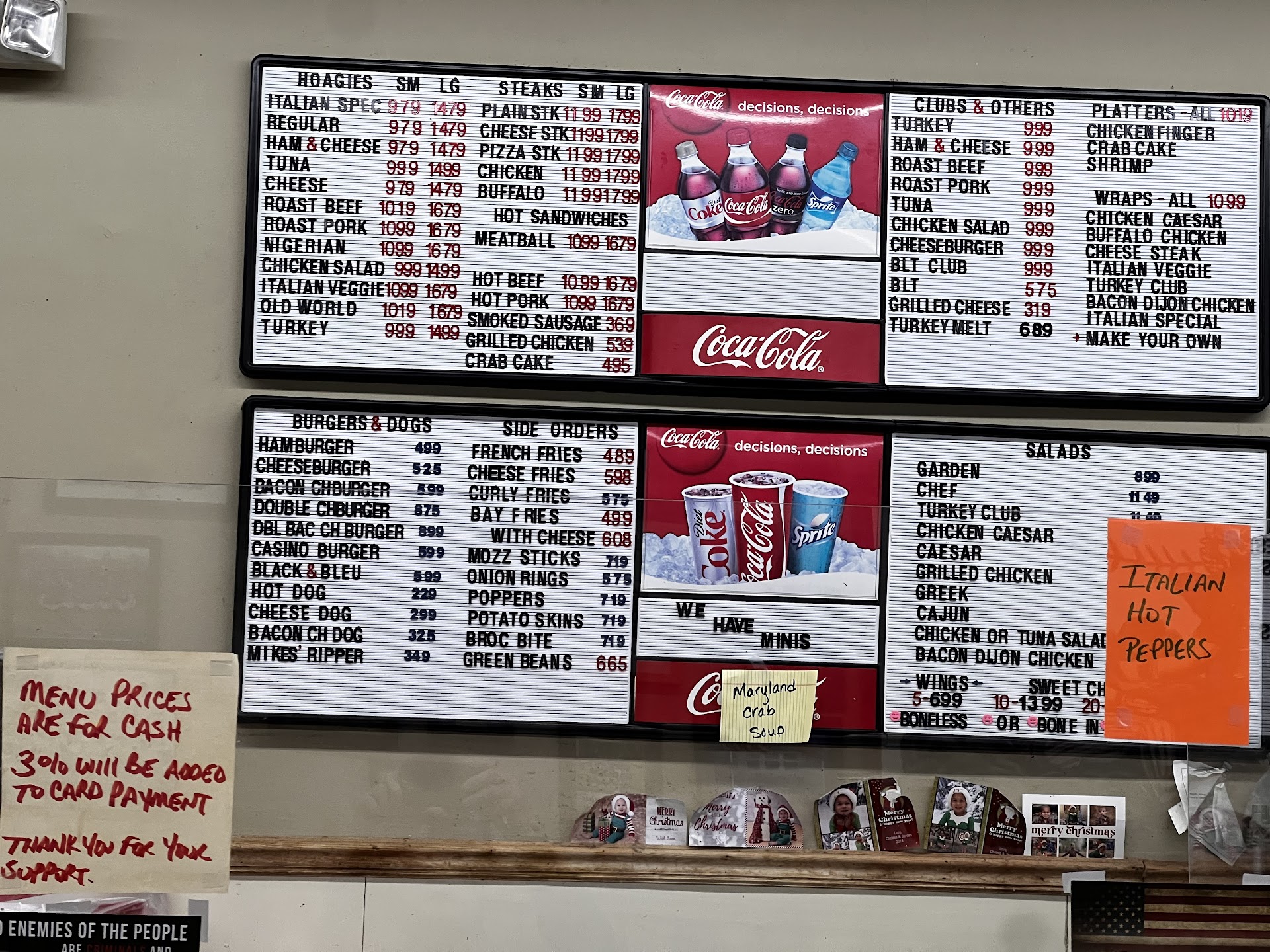 Read moreThe food was okay. We got a cheese steak, chefs salad, casino burger, fries, 10 wings, potato skins, buffalo cutlets, and jalapeno poppers. I was surprised when she gave me the total on the phone. When I added it up the menu prices it was $10 less than their total. Went I went to pick it up, we asked about the price discrepancy and asked if they had raised their prices without updating their website. We were told yes, they've been raising there prices every time their vendors do each week. That's fine, I understand that stuff is happening, but put something on your website and Google My Business saying prices may differ or something do customers aren't shocked when paying. Got home to eat. Casino burger doesn't have the fried onions it's supposed to come with and was on a kaiser roll. The buffalo cutlets had the disgusting blue cheese dressing that we asked to not be included ( when they read back the order they said no blue cheese otherwise I would've corrected them). Don't think we'll be ordering from them again...