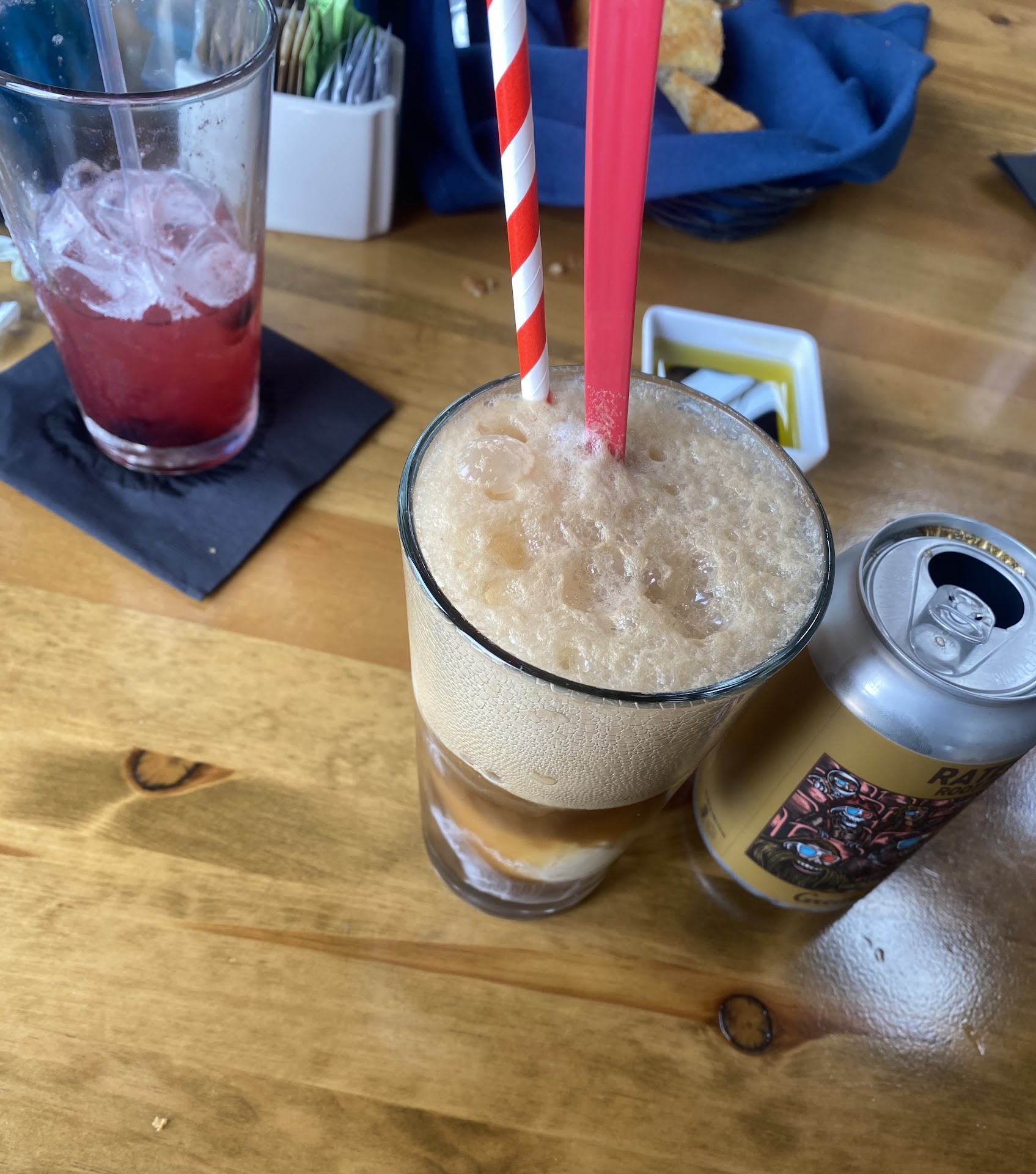 Food and Drink: [Fish & Chips] - I had an order of 3 fish, fries, and slaw. The slaw was very good, as were the fries, but the fish was not great. The flavor of the fish was good- clearly fresh, but the breading was insanely slim. The breading was honestly melting away from the moisture of the fish by the time I finished the first piece. The second piece I tried essentially fell apart in my hands, and when I ate it the texture was slimy. The third followed suit to the second, which makes me believe that it wasn’t a one-off situation- possibly that when it begins to cool that reaction results. [Huckleberry Lemonade] - I had 1 glass of Huckleberry Lemonade that I didn’t finish. Its visual presentation was nice, but the taste was very bitter, as if it had an overwhelming amount of salt in it. Someone else at my table had a similar issue with their drink, where it was extremely salty. [Bread Basket] - The bread basket came with 4 pieces of bread in it, but had an overwhelming amount of rosemary in every piece. It doesn’t mention what kind of bread it is on the menu, so focaccia was a big surprise. [Root Beer Float and Oatmeal Lace Cookie] - The root beer float was served as a glass with 3 scoops of what appeared to be vanilla bean ice cream with a can of root beer on the side. The brand was unknown to me, and will not be sought out again as it was very watered down. I took a swig from the can and attempted to hold it in my mouth to determine the taste, but the entire swig foamed up almost instantly leaving absolutely no liquid. The ice cream, while it has a very nice smooth texture, didn’t have much flavor either, tasting more of ice than vanilla. The oatmeal lace cookie that came with it was not actually brought to the table until we reminded the waitress about it. The taste and texture of the cookie was actually delicious, though the suggestion from the waitress to dip the cookie in the float simply resulted in a soggy cookie with no discernible change in flavor. The straw used for the float was cute decoration.