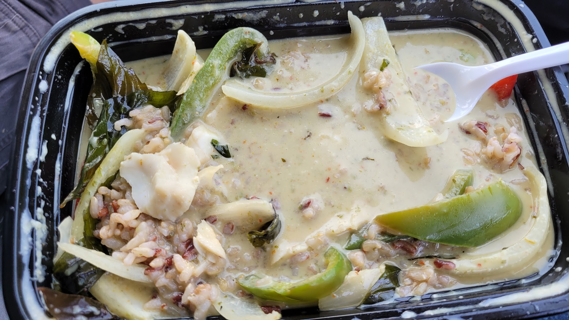 Read moreI am not exaggerating when I say, I think this food truck should have 1 Michelin star. We ordered the Pad See Ew, pan fried rockfish special for $22 plus $2 for the peanut sauce and the crab wonton appetizer for $50. Our spiciness level was medium and even though it ended up a bit too.apicy for me, I couldn't stop eating. The sweetness of the two dishes kept me going. The rockfish curry had generous slices of onion and asparagus. The brown rice was the perfect texture. The pad see ew was one of the best I've tasted, great texture, sweet, salty and spicy perfectly balanced. Wow! The person who took our order was wearing a veterans cap and really sweet and nice. I'm...