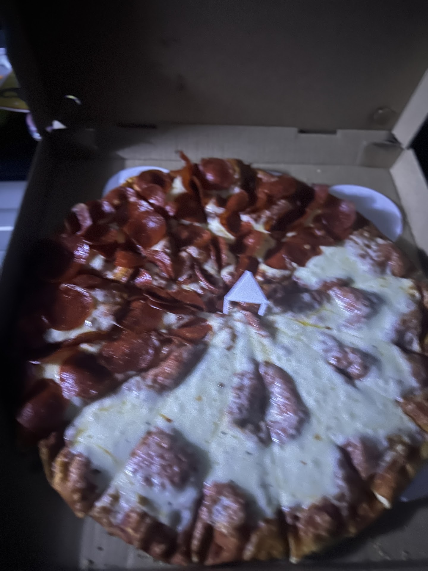 Additionally, we ordered a Large Pepperoni Pizza, requesting extra pepperoni only on one half, while keeping the other half regular. However, when we received the pizza, it was labeled as having extra pepperoni on the entire pizza, which was not what we had asked for.