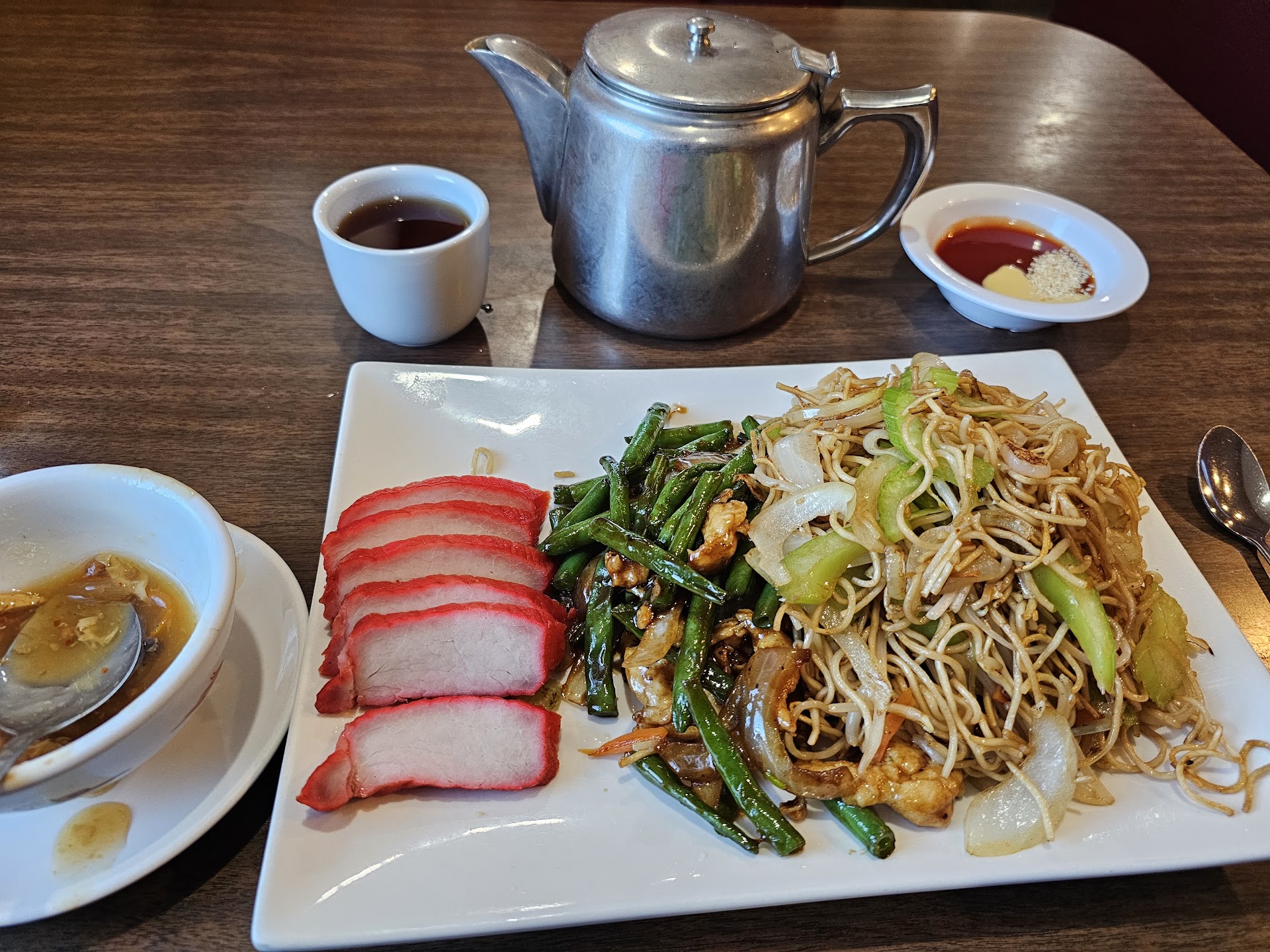 Read moreClean and quaint place. Friendly service. Refreshing cold water, and comforting hot tea. I got the 3 any item; meatless lo mein, chicken green bean stir-fry and the barbequed pork! It came with the complimentary soup of your choice of either egg flower or hot and sour. I chose the hot and sour one, it was delicious! Not overbearingly spicy, tangy and thick consistency. The meatless lo mein was perfect for my taste. Not greasy, soft with slight crunch and good flavor! I really enjoyed the chicken green bean stir-fry the most! The green beans were cooked good, still had a crunch to them. The chicken was cooked to perfection! The sauce in it was divine! Reminded me of terriyaki sauce, but not sure what sauce is was... super delicous! The barbequed pork was good even with it's sauce! Will say though, the chinese mustard is spicy, but it was also yummy too! The prices are still really reasonable, and for how much I got, it was...