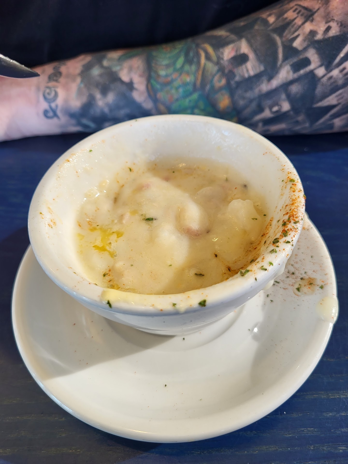 Ā Ā Ā Read moreHubby and I went here on vacation to satisfy his seafood craving, afterall we were on the water. We were very happy with the food, service and atmosphere. Our waitress, I believe her name was Nancy, was amazing! She has this great, bubbly infectious energy and personality, and it's obvious she loves people and cares about them. She helped the cutest elderly woman who came in with her daughter. She wasn't able to sit on the bench seat due to physical limitations, and without missing a beat, Nancy (I really hope I remember correctly) ran and grabbed her a chair she could sit in and made sure she was OK, helped her sit and was so compassionate. The customers were so thankful. She easily made conversation with us and her other customers. She let us know what was good and made sure we enjoyed everything.... Ok, now on to the food. My husband had the clam chowder and loved it! And he had the seafood plate with shrimp, clams and fish, and was really happy with it. I had the fettuccine alfredo without meat and it was sooo good! Big portions, good price, good quality, fresh food. And it's on the water so no complaints there either. It is a very casual restaurant, which I wasn't expecting. It was a nice surprise being able to sit on the water, with beautiful scenery and great food without a high price tag! I actually called my parents on video call to show them the scenery and our plates. They are from Massachusetts on the shore and love clam chowder and seafood, but have a hard time getting it in Arizona. So I had to let them enjoy vicariously through us, lol. Definitely...