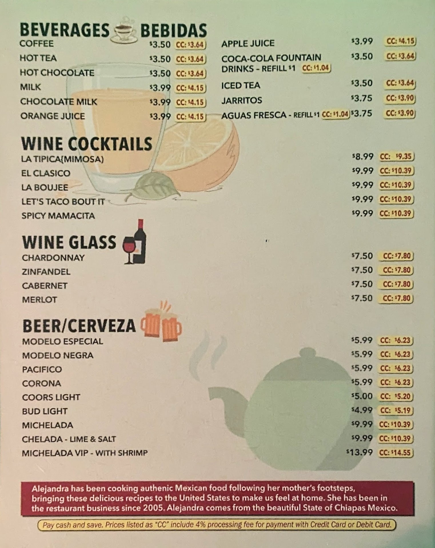 Read moreToday in our way to Yosemite from Pismo Beach we stopped at this cozy, traditional yet exceptional restaurant. First, let’s start with the welcoming greeting from “Ale” the owner and his husband “Nacho”. They are so happy to serve their customers like of you were the center of the universe. That’s how we felt. Now, let’s review our breakfast options. 1. Chilaquiles mixtos (rojo y verde). Platillo espectacular. Una sensación de frescura y sabor. 2. Burrito mixto. Huugeee inside and flavor. 3. Desayuno mexicano. Huevos revueltos con tocineta, frijoles y chilaquiles. All the dishes were really but really good. Not to mention the delicious hot chocolates and the cold cold ass long neck Corona beer! What really made this visit unforgettable was the undivided attention from both owners who came to check on us often with the greatest energy and kindness. Shall we come around this area again we will absolutely and totally go out of our ways to enjoy the experience of dining at Ales place again. Check out some pictures and don’t hesitate for a second to come and eat with Ale and Nacho! Guarantee you will not regret. Ask Nacho to tell you his Tio stories! Found them hilarious!....