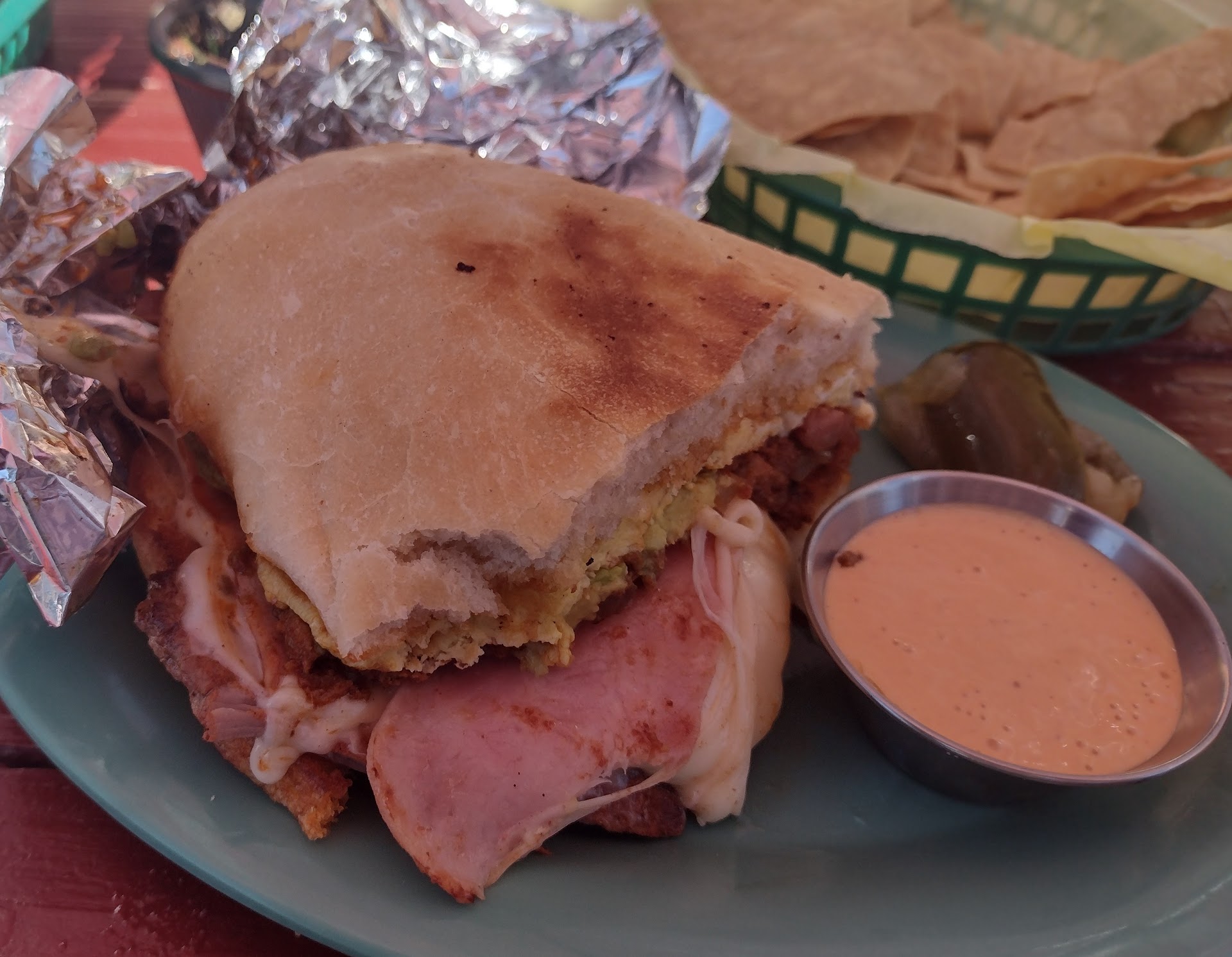 Awesome Mexican food. We loved AJ's and were sad to see it was no longer around, but when I read some of the reviews (and saw the pics of the food) of the new place, we just had to try it on our way back from Pismo Beach to the Bay Area. It was just as good, probably even better! I had a carnitas torta, which was delicious -- tender flavorful pork, creamy queso fresco, and an amazing bun. Daughter got a breakfast sandwich with bacon and hash browns, and wife got the chicken breakfast plate, both good. We got a big basket of complimentary tortilla chips with homemade salsa to start with. Lots of outdoor seating. Service is really friendly and cheerful. We'll definitely stop by the next time we road...