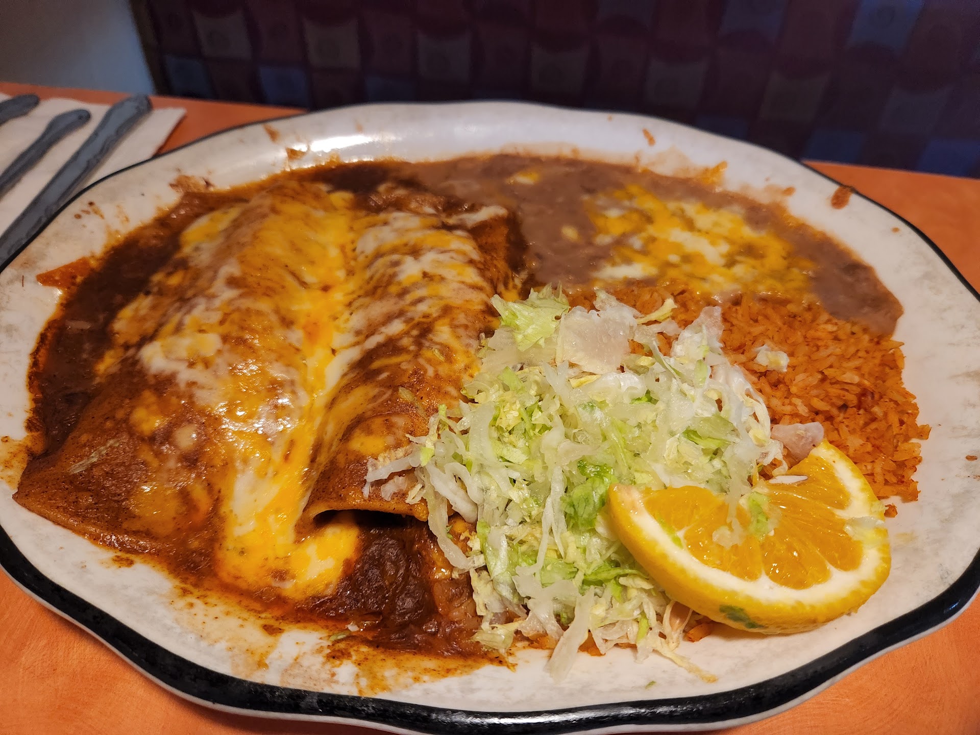Read moreMy wife and I went here for dinner with a friend and we slightly disappointed. My wife and I order one of there large combination plates to share with enchiladas and tacos with rice and beans. It had good flavors and we thoroughly happy with the taste of our food. Our friend ordered a burrito with chicken and she literally got chicken wrapped in a tortilla and that was it. We were surprised by that but hey maybe she should have been more specific. Our frustration came from the fact that we were a simple party of three and we saw many other groups of a larger size and even some couples come in after us and get their food before. Not sure what the hold up was but we waited for almost an hour before our food arrived. In the mean time the chips and salsa service was slow as were the refills while we...