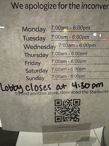 Read moreThis store is just a mess. First, they have a significant hours change but don't bother to update their hours on Google. Customers should not be responsible for submitting edits to Google about changes to hours at a Starbucks. Then, despite having two people here for an hour and a third for a half-hour before opening, when they finally do open, they're still not ready. I timed the first few cars and it was taking nearly 5 minutes per car, which is way to slow. It took 7 minutes for me to get my drink inside (I was only the third drink order). One of the girls (she seemed like the shift lead) was working really hard to clean before opening. The other two, however, looked more like they were moseying around like there was no rush to get anything done. Having ran a high volume coffee shop for several years, it's unclear why it took three people nearly an hour to get the store...