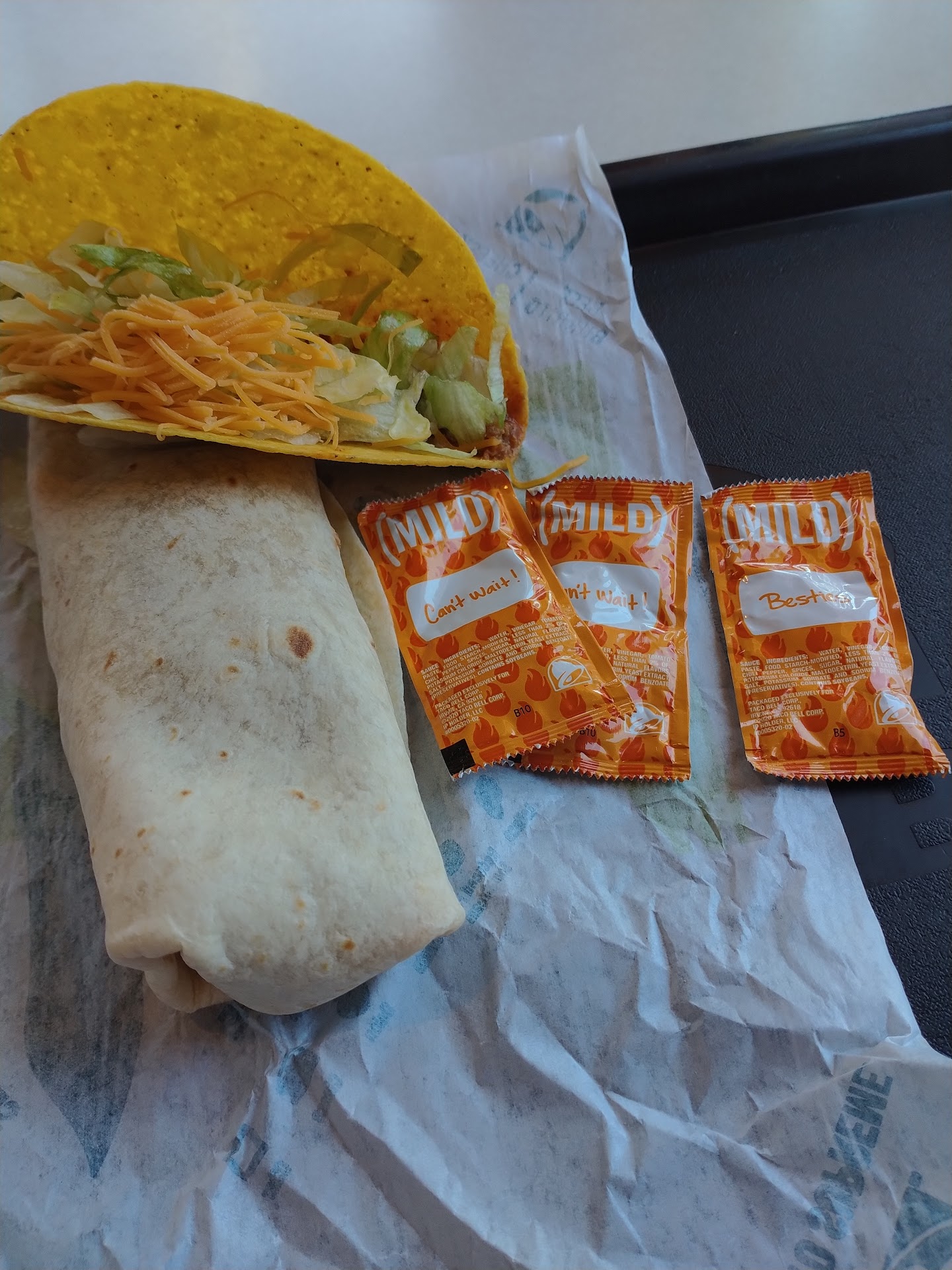 Read moreThis Bell is fine and we go by probably 2-3x a month, but we had the most awkward experience today. Generally, the staff is ok, but the girl on drive-thru this afternoon was the oddest ever! First, didn't repeat our order, talked over us to get our drink order, and then seemed annoyed when we wanted to make sure she heard us. Ok, whatever. In person...wow. Said NOTHING. Just STARED. Had her hand out the window with our drink and actually pulled her hand back when my husband went to get it because I was counting out the entire $6 we owed. Not that she had a second hand out, we practically could have grabbed and gone as she wasn't paying attention. We would say thank you and she would just close the window or STARE and then close the window. We wanted some mild sauce? How dare we...STARE. It wasn't that she didn't hear us (or if that were the case, maybe ask us to say it again). No customer service whatsoever, even what little you might expect from fast food. It was just way too uncomfortable and very...