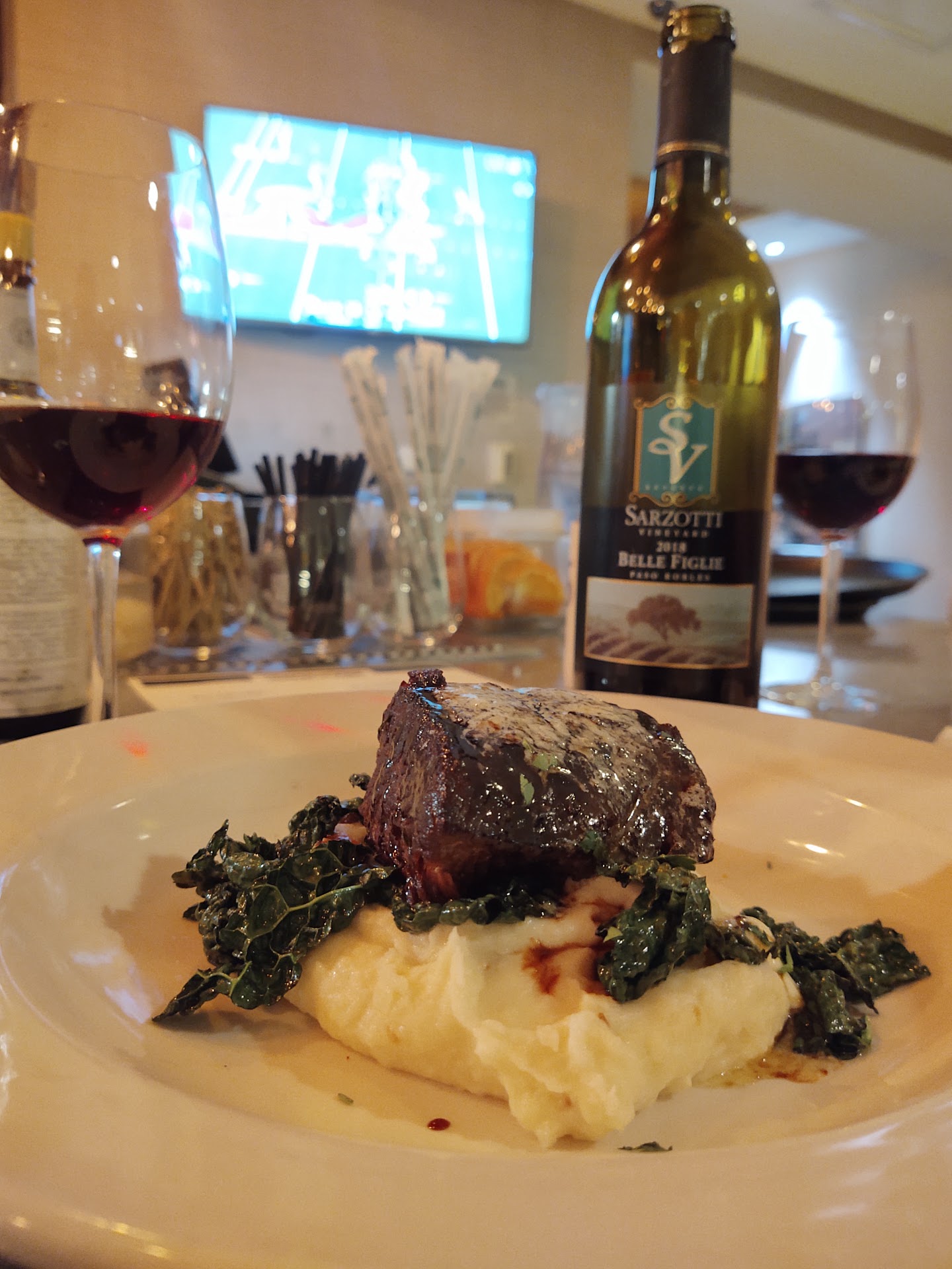 Read moreMedium sized bar with table seating inside the Springhill Suites hotel, but open for dinner only. Full bar with wine, beer, and mixed drinks. Small but varied menu for apps, entrees, and salads. The food is good, our bacon wrapped dates were flavorful, the bacon was a tad bit overcooked, but much better than what you'd get at a chain restaurant. The salad and jalapeno artichoke dip were both very good. The wine selection is decent, with about 20 different local wines. There are beers on tap and a full bar too The prices are reasonable for the area. A good place to watch the game on the numerous...