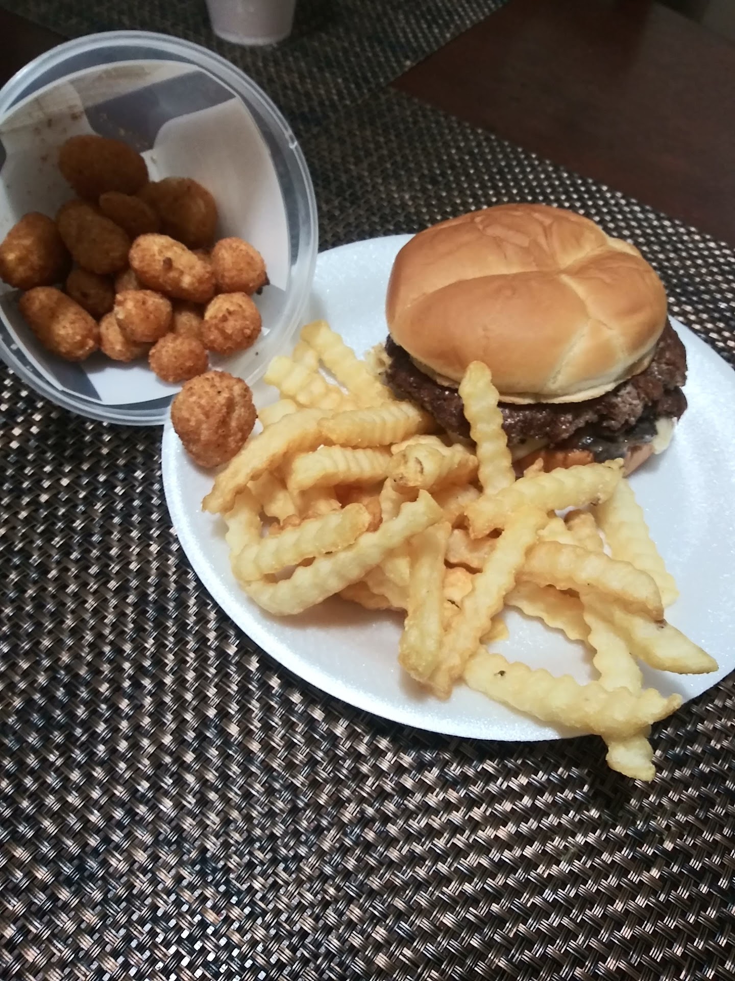 The burger was relatively small compared to the name of a deluxe. I thought to myself, ain't no way this meal is $10.79?! How when everything is so small: small burger and small fries. Culver's regular fries come as small as they can get it. Such a ripoff. It didn't taste spectacular and couldn't taste the difference. The cheese was just placed on the meat it wasn't even melted. If I wanted that I could've made a burger at home for a lot less.