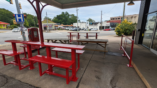 BTW this is a cute place to dine. A really old gas station I guess - cool decor, great old brick. 3- 4 tables inside. There is a patio dining area with picnic tables.