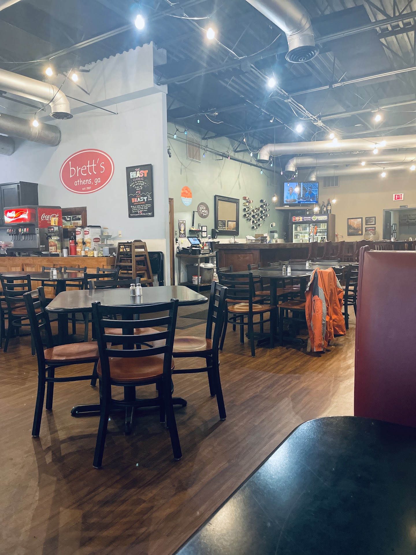 Ā Ā Ā Read moreWe love this place. It is our version of Cheers! Brett, Leslie and James do a wonderful job. The staff, although young and sometimes inexperienced in wait service are well trained and very friendly. People may not be used to the order process but it is quick and efficient. We prefer to sit and order. We tip higher for that kind of service. We love the variety in food. My wife is vegetarian, so she orders the veggie pattie instead. Some reviewers may not know this is an option. Not clearly stated enough on the menu on the board but is on the printed menu. As a previous executive chef for 12 yrs myself, I can appreciate the challenges presented to a moderately large place with no reservations. The food is well prepared and tasty. If however, not perfect they will make it right. For those not used to Southern version of meat temperatures, medium rare is closer to rare and medium us more like medium rare....so you are better telling them what color inside you want it. Pink works best for me. This is not a Brett's issue but more a comment on the region in general. If you want a great tuna steak try theirs medium along with aioli and fresh lemon. Their shrimp is one of the very best in Athens. Hard to find their large shrimp for the price. Most places version of "jumbo" shrimp is 21-25. They should be 16-20s. All the meat selections are great value for the price. And the veggies are fresh and not overcooked. My wife has to ask for double steamed in the broccoli because she likes it tender. It is her favorite veggie though. Soups, beans, sauces, etc all fresh and made from scratch. We came here when they first opened 10 yrs ago (previously we were Loco's customers at that location). We sort of came with the building...lol. Joined the Brett's Club. Get great deals for eating there regularly. Plus you get $10 off for your bday month visit and your anniversary. Spend $200 in accumulated meals (no time limit) and get another $10 credit. We eat there 3-4 times a WEEK. Closed on Sundays for religious reasons. Most of the staff we know by name. Some we have met keep in touch as they have moved out if area for school. You cannot go wrong...
