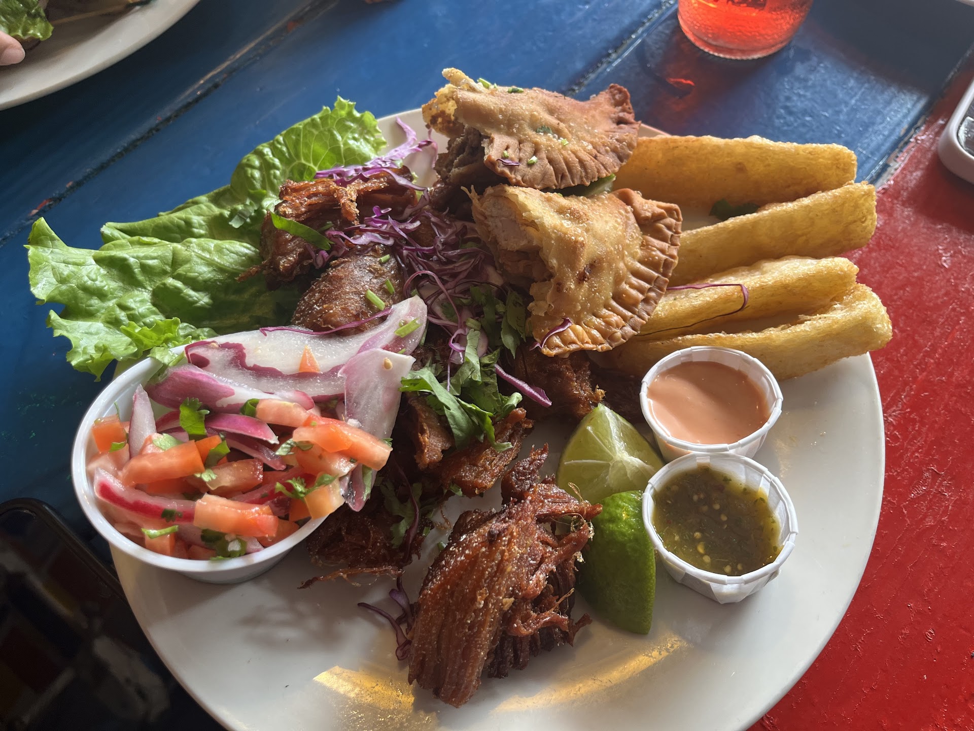 The food is over all very fresh and tasted quite good, but my empanadas had very little meat/ cheese filling, less than half of the shell, which left me still hungry (not going to eat just the shell) and feeling gypped. The others in my party had better value for their yummy meals.