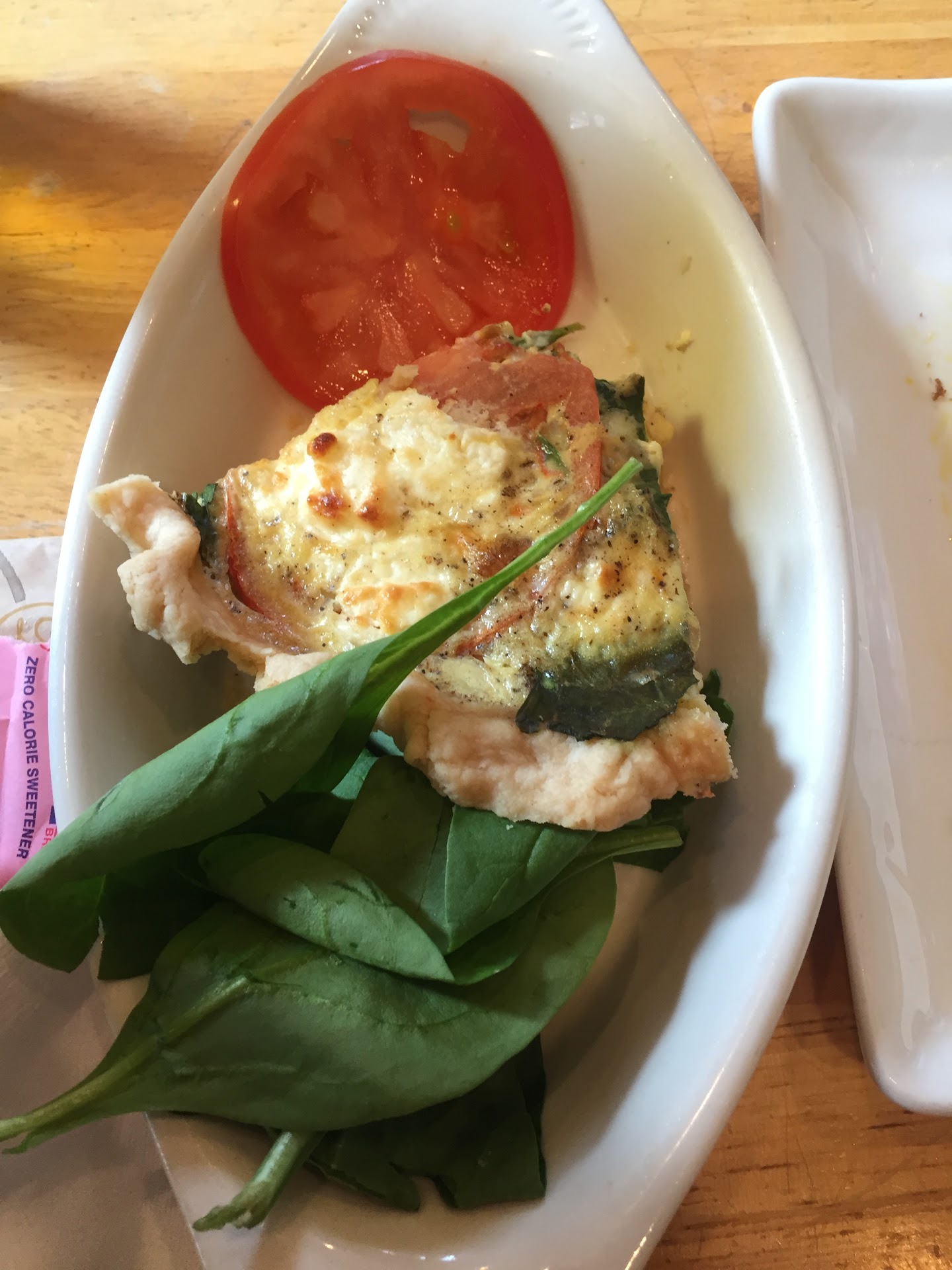 I was going to get the quiche special (goat cheese, tomatoes and spinach) for my meal, but we decided to get it for the whole table, and Iâm glad we did because it wasnât a whole quiche! It was maybe 1/4 of a quiche, which was not advertised. For $5, that wasnât worth it.