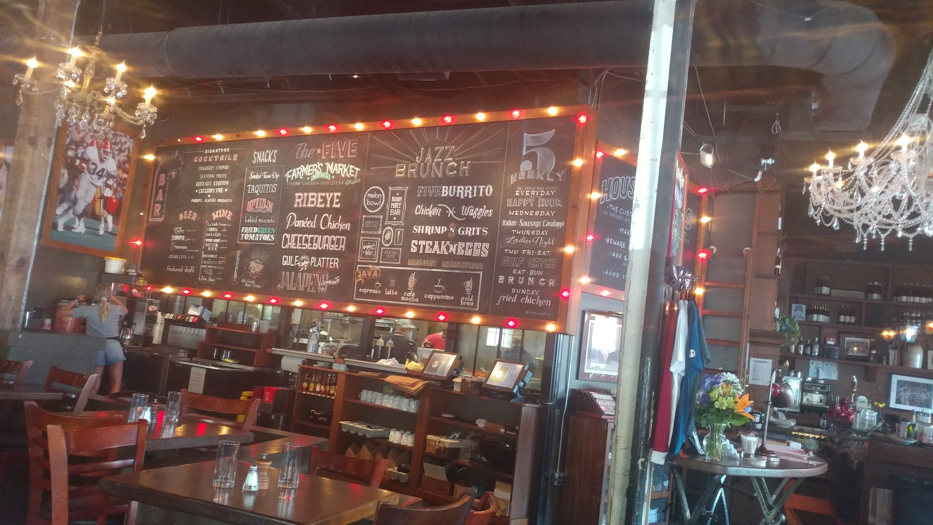 Read moreFive bar used to be one of myself, family and friends favorite spots. The last few times we've been have been disappointing- the last was the worst Sat Oct 23rd in particular. From the moment we walked in for Brunch every staff member we encountered had quite an attitude and clearly did not want to be there. The hostess to start was rude but we brushed that off. The server was no better. It took 2 hours or more from when we ordered our food to receive it and the place was maybe 1/2 full or less- half of our guests food was already cold from sitting out. The server was not attentive at all, wasn't even bringing waters, coffee, nothing. She seemed to be avoiding our table as much as possible even for us to order we had to ask 3 times. When I ordered I also said my husband and I would be on the same check and she acknowledged that. We waited forever for our check to come out and because our party had more than 5 people she relayed the check was not able to be split- it had to be split evenly amongst every person so I got to pay $28 for a basic piece of avocado toast. Had she mentioned this before when I specifically asked when ordering it would have been no problem- I wouldn't have ordered. To top it off upon leaving, we went to grab a toothpick from the front bar set up and the bartender responded with a "you could have at least asked for me to get it for you". We thought she was being funny and sarcastic at first but she was dead serious. A toothpick? On the bar top? Isn't it more sanitary for the person "picking" it out to be the one to use it?? Instead of it getting passed by someone else's hands when its going in your mouth? All in all, we will not be returning to Five Bar for a long while. I worked in the service industry for years. I can deal with okay food, long waits as I'm sure like every restaurant they are understaffed, but attitudes from every staff member encountered will not get...