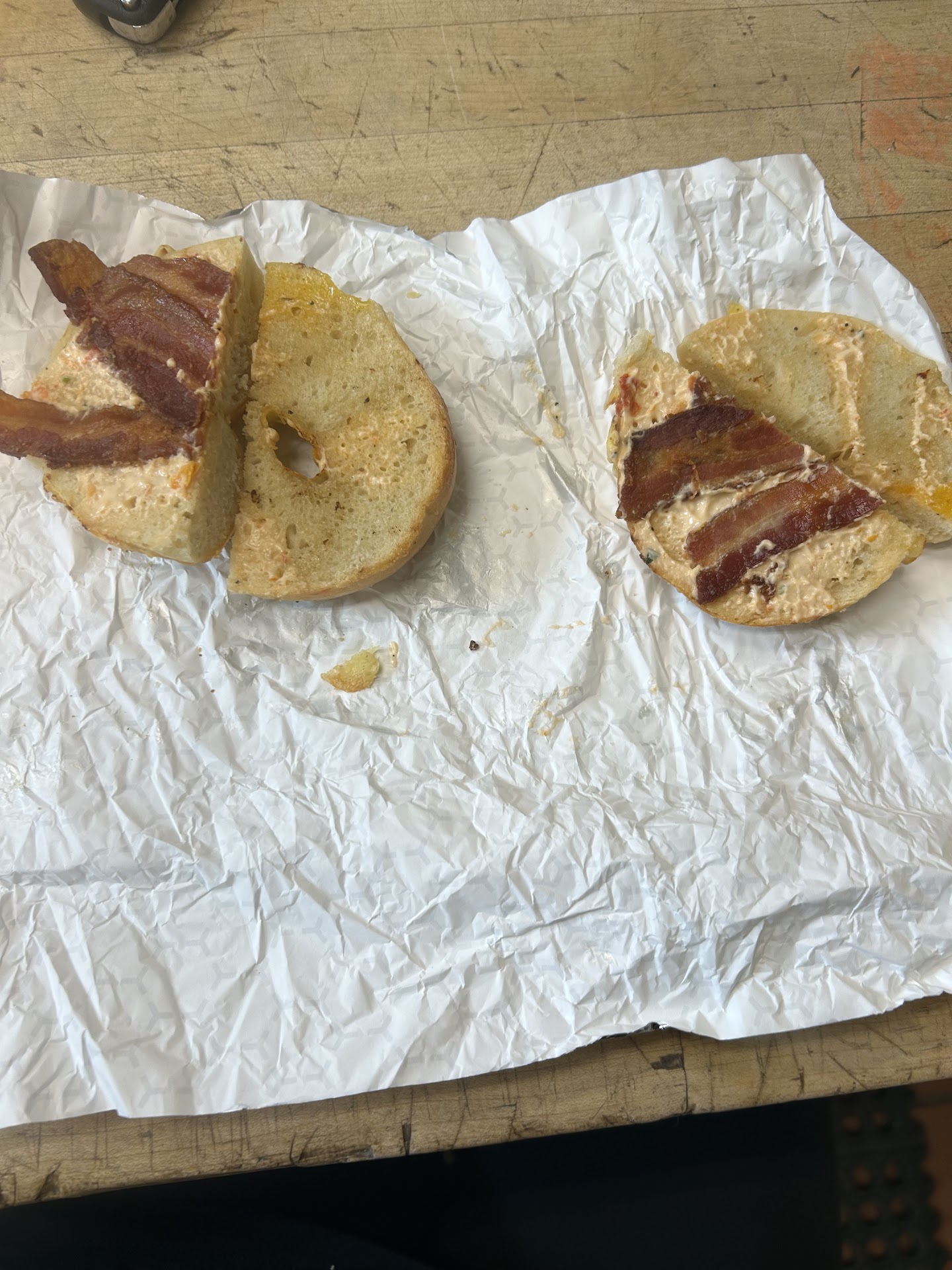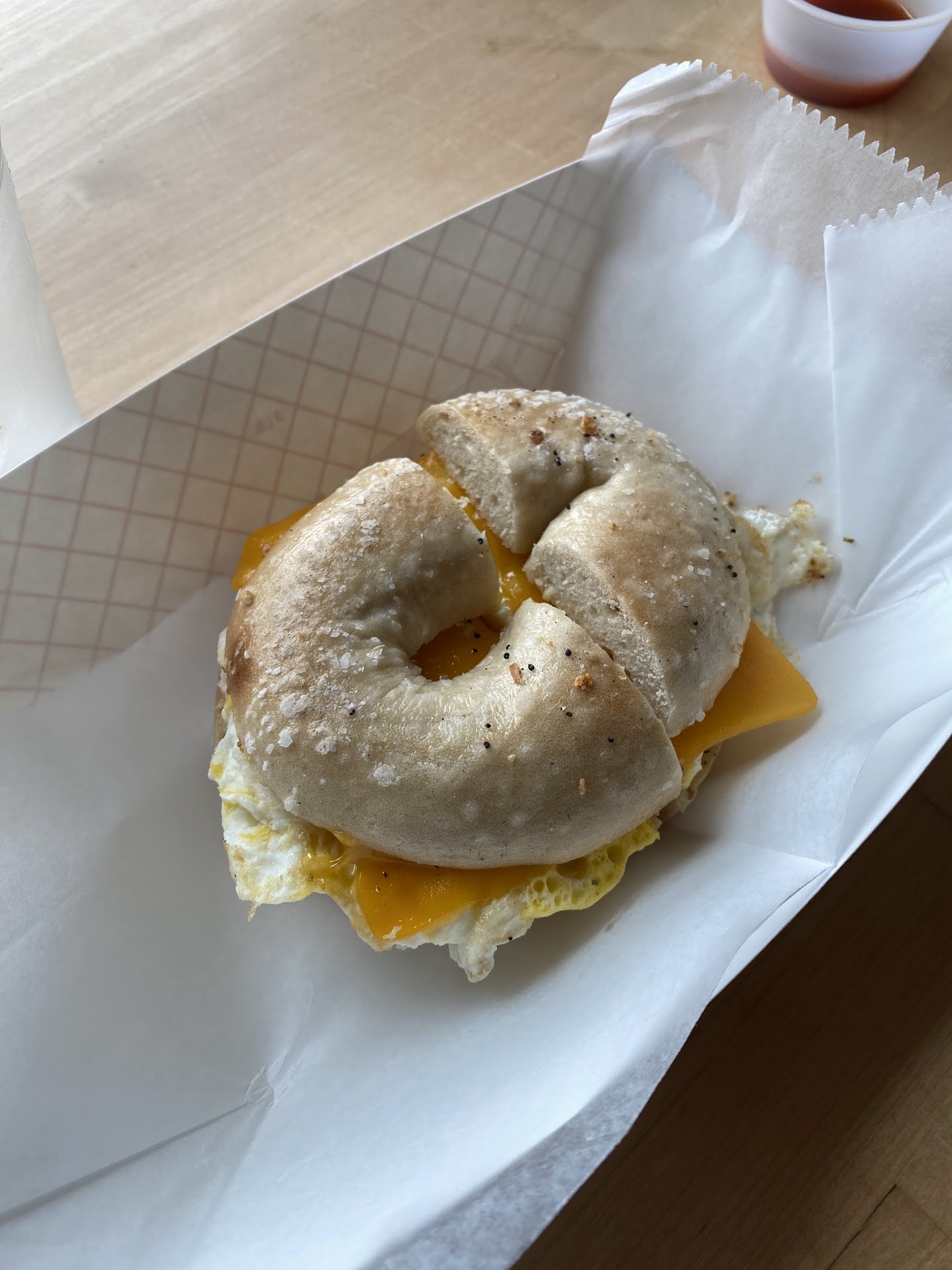 Read moreI'm from SC so I know very little about bagels. I would like to be a bagel know it all but my experience only goes as far as the grocery store. I have an idea how a bagel should be, I've imagined a fresh new York bagel from the city, I may be wrong but my idea of the "proper" bagel should be chewy, shiny, and a crisp on top. Ideal bagel is an awesome little college joint to sit down and be college cool, but I'm 41 so that isn't my purpose anymore.. Lol. Two dudes in Jamaican hats are doing the cooking, I had bacon fried egg and cheese on am everything bagel. The bagel honestly was no different to me than the ones at the grocery store, with the exception of thyme on top of the bagel, which really turns me off, but it's everything, so my complaint understandably holds no validity. The bagel wasn't chewy at all, but the bacon and the fried egg was outstanding! Perfectly fried egg and bacon was thick and substantial. Now before I get slammed for saying something about the bagels, it was good, just not my idea of great. It may or may not of been boiled? Great place, just wasn't my idea of awesome when it...