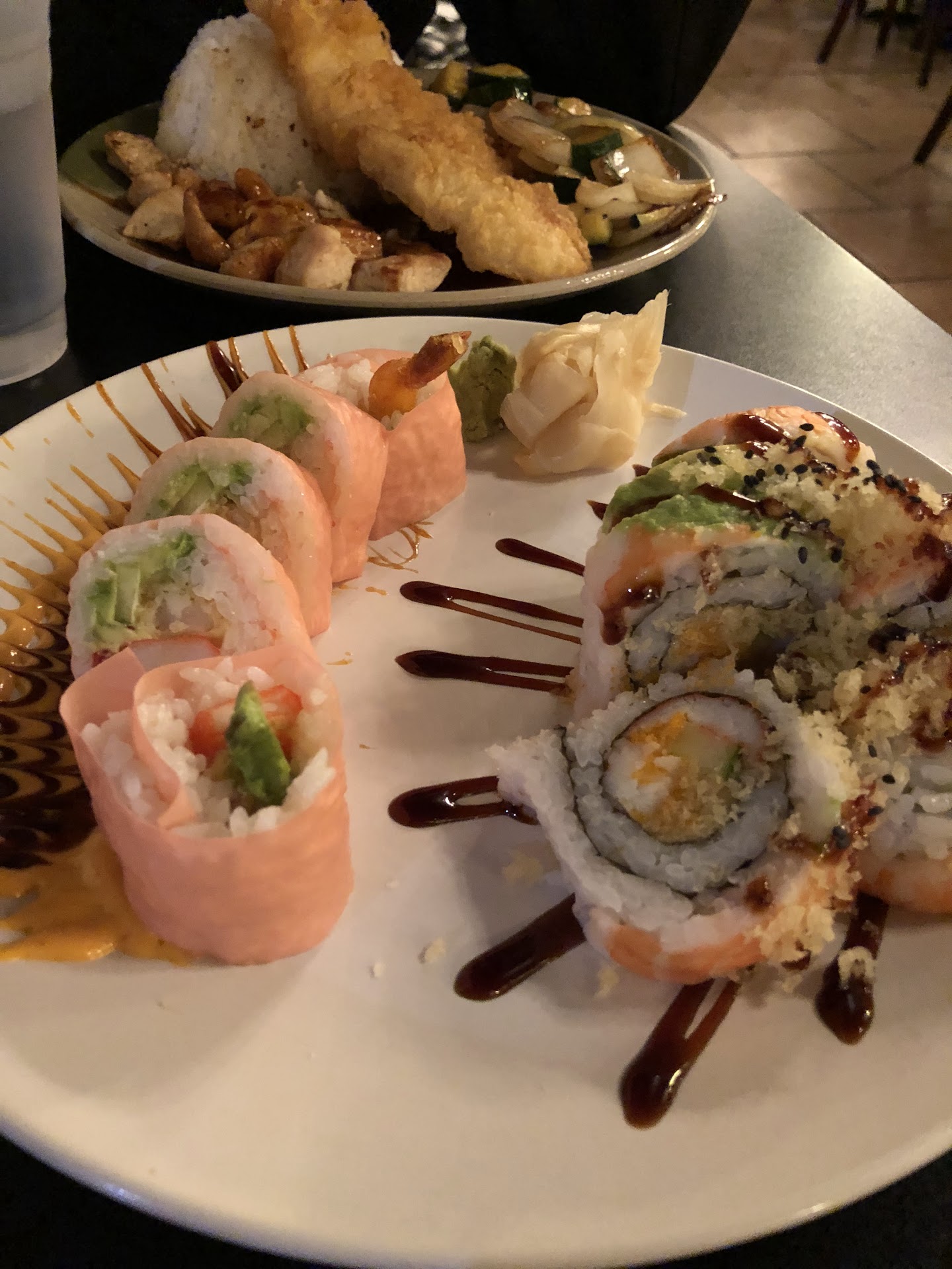 You can also find standard American-style "hibachi" stuff, and it's pretty good as well. But personally, I like their sushi best: there is a lot of western-style rolls mixed in with more traditional nigiri sushi as well, and all of it is good in my opinion.