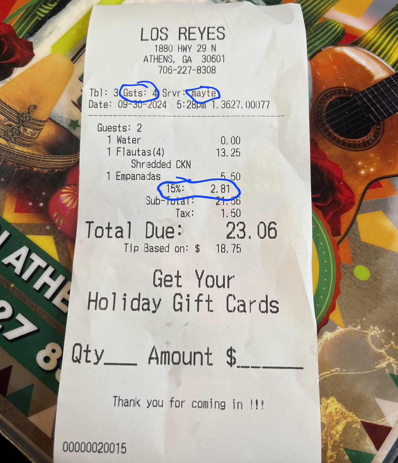 Ā Ā Ā Read moreOne of the best birthday evening celebrations! Plenty of parking space, colorful mexican decorations identifying the restaurant. We were greeted once we entered and different options where to be seated were offered. Menus were handed and immediately Juan, our waiter, approached with a big smile and great attitude. He was patient and very helpful answering our questions about the food. Chiles rellenos is one of my favorites dishes from very traditional mexican gastronomy and it made me very happy being able to see it as a part of their menu. Draft beers are my preferences when it comes to drinks, even though they only serve it bottled. I I was able to order a frozen margarita from the house which was delicious. My birthday daughter ordered a dish named carne asada and shrimps, my oldest daughter had chicken flautas and I had my chiles rellenos. The dish brings two, the one with cheese was amazing. The one with carne wasn't that much, but i still enjoyed it. Fresh warm tortilla chips and a variety of house made authentic mexican salsas entertained us while waiting for the main courses. Clean and welcoming ambiance! In general, all food was fresh and very well presented and had great flavor. At the end of our dinner, Juan went above and beyond and he brought a tequila shot and a beautiful sombrero to my daughter to wear and celebrate the mexican way her 23rd birthday šš and yes! She was brave enough to drink that shot and still laugh. We had a blast! Thanks everybody at los reyes for making our celebration an...