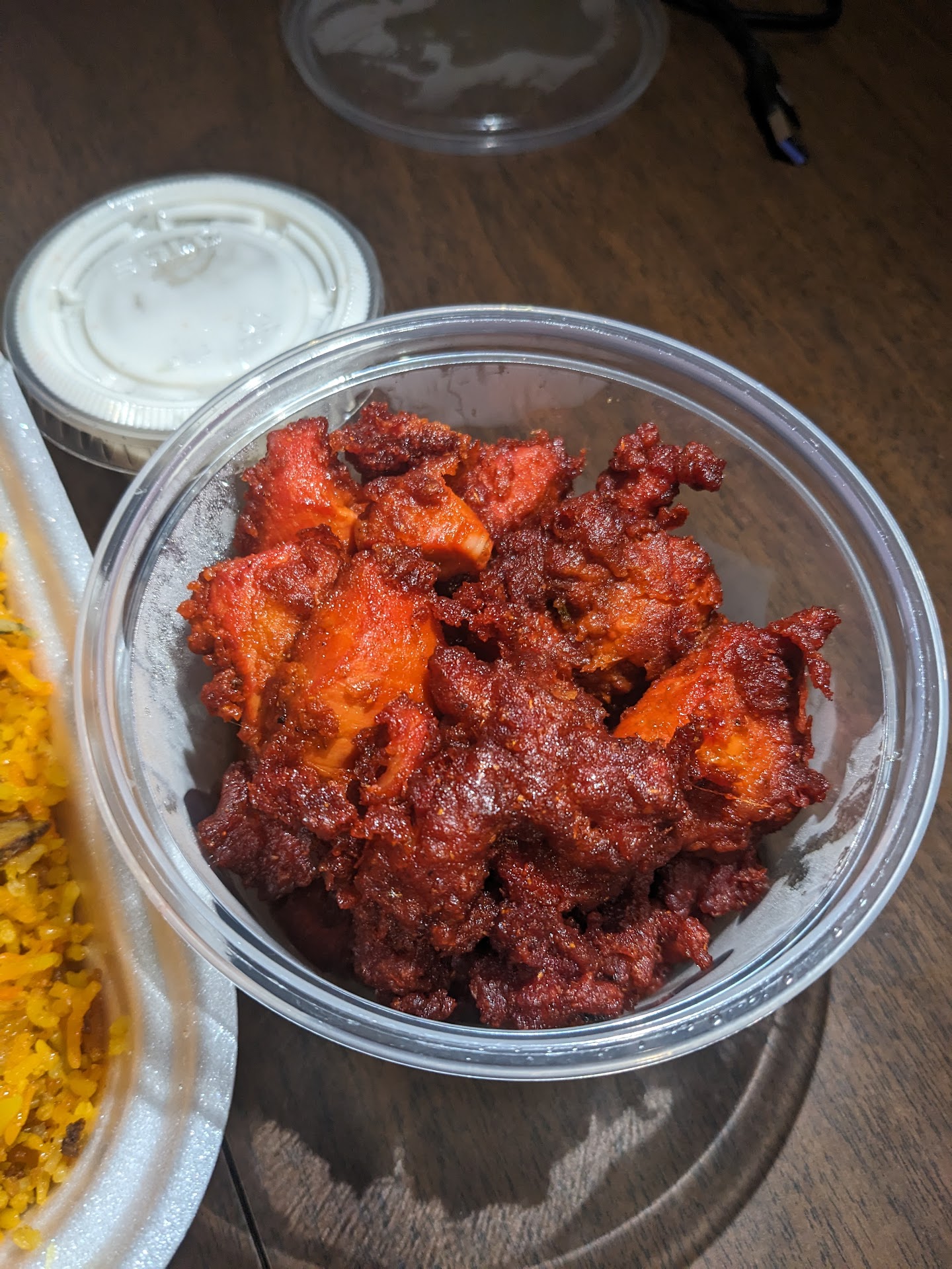 Read moreVery happy to have a casual Indian restaurant nearby. But there are some adjustments needed, for sure. The chicken biryani was first rate, nice portion and included a thigh and leg. Came with raita. Very pleased with this dish, much better than I can make it and the fairly generous quantity was acceptable for price paid. I feel pretty good about this dish. The chicken tikka masala was another story. Very little chicken, barely enough for one person. A few pieces of veg, mostly sauce, which was good. Not best I've had, but good enough. This container needs to be mostly chicken, at least enough to feed two people. Barely enough for one. Will not get this again or any of these entrees for fear of same low protein approach. Sorry, but if you want to charge $15-16 or so for a meat centric dish, it should have at least 8 oz of protein, not 4 oz. The naan was also somewhat disappointing for price paid. Two small butter naans for $8. Better off going to the market next door and buying a frozen pack. Naan should not be more than about $2 each, especially this small and really not much better than frozen. Hopefully, adjustments are made going forward and, if so, would see me coming here more often. There is a lot of...