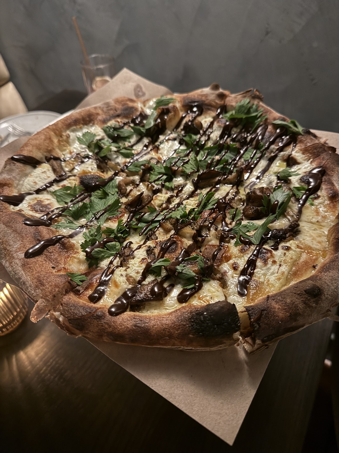 Entrees: Funghi Pizza: thin crusted, crisp, but with excellent, fresh ingredients. Topped with rosemary, garlic, and mushrooms. Delicious. ** Mafalde Cacio e Pepe: my favorite entree, slight peppery kick with each bite, wonderfully rich garlicy, olive oil sauce without drowning the pasta, and cooked to perfection. Decent portion size as well. ** Ravioli All'aragosta (lobster): The lobster ravioli was similarly flavorful, and lay in a great tomato butter sauce. It was a little on the al dente side, but very enjoyable.** Ziti alla Vodka: I enjoyed the creaminess of the ziti, but I found it to be a little spicy to my taste. It was not what I would describe as hot, but just spicy. Had I eaten only this dish with the other appetizers, I probably would have enjoyed it more. *