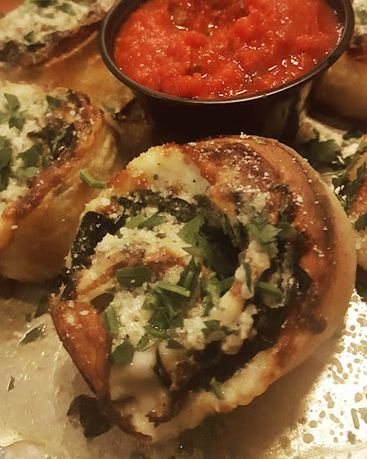 Now on to the nitty gritty. This place took over a beloved pizzeria in Athens- Transmet. Starland is nothing like it. It’s not good at all. We started our meal with the garlic and spinach spirale- the menu didn’t indicated that it also had mushrooms in it, but it did. It arrived terribly under baked to the point it was raw in the middle. It was overstuffed thus hindering the doughs ability to cook at all. The cooks probably saw that the cheese was burning on top and thought that the spirale was done cooking. This just shows that the cooks are inexperienced.