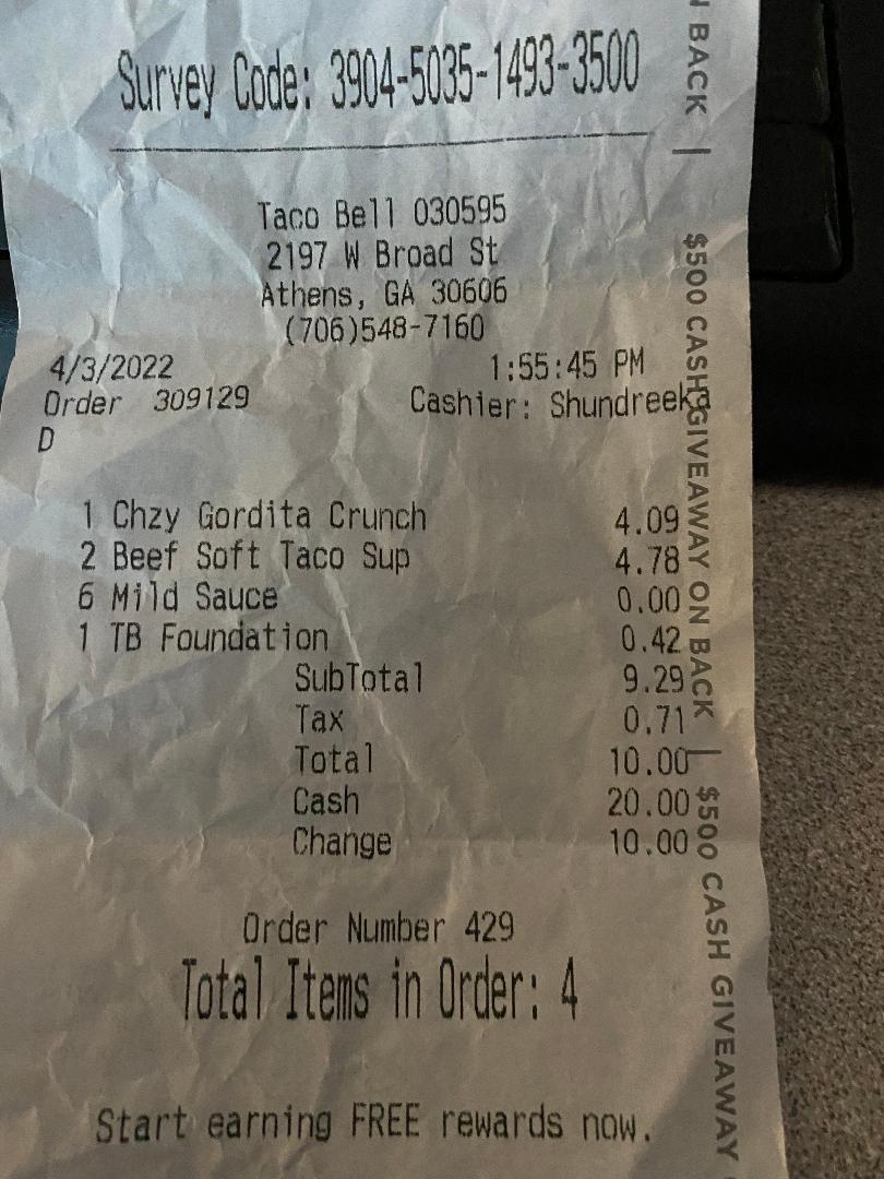 Ā Ā Ā Read moreThis place should get 0 stars. I always order 2 taco and burrito party boxes which I did this evening. I asked for all the toppings this time and understand the upcharge so didn't think $24.29 was suspicious for the total. I was given 1 box (no receipt), this has happened before and I was told by staff in the past they condensed the order into 1 box. I drove out of line and decided to check the order because the box felt lighter and it was just one order. I went back to the window and asked for the rest of my order, I was told it was rung in wrong and it should have been $21.50, for 1 taco and burrito party box with all the toppings and I could get the difference refunded. I needed 2 boxes so I asked for the 2nd without the extra toppings (tomato and sour cream aka supreme) because $9 seemed off for the upcharge. The manager charged me $12.42 for the 2nd box and said she would have the kitchen add toppings on the 2nd box to make up for the difference in the charge, could I pull into a stall and someone would bring it out. When I got the 2nd I checked all of the items again and didn't see tomato on any of them (1st or 2nd box). I drove to the front and was met by the manager who was speaking to someone outside. I told her that there were no tomatoes and I couldn't see sour cream and that at this point I don't want them just my money back. She said they don't do refunds and they could fix it but she only charged for tomato not sour cream so I would have to pay extra for sour cream?! She dug the original receipt (for the incorrectly rung order $24.29) out of the trash but couldn't show me the price for the supreme upcharge on a taco and burrito party box...? This all took an hour and the energy coming from the staff makes me feel like someone spit in my food. Horrible customer service and the worst experience I've ever had at...