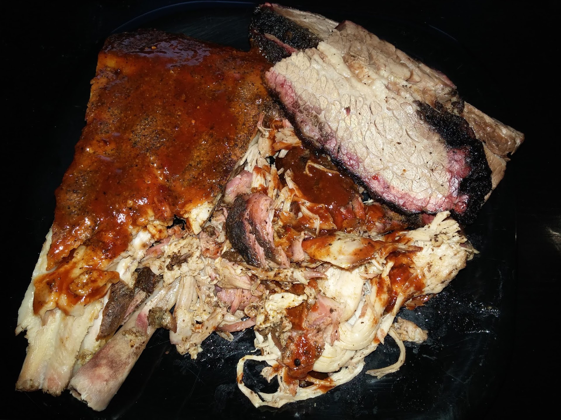 The brisket -- mixed bag. The taste is good. Texas BBQ gets flavor in the smoking (often Mesquite). I'm used to brisket that is sliced, firm in texture, soft to the bite, but not at all mushy. You can get chopped brisket, but I prefer sliced. This brisket was chopped and fatty, and reminded me of pulled pork in texture. To me, if you're going to have brisket, it should not look or feel like pulled pork.