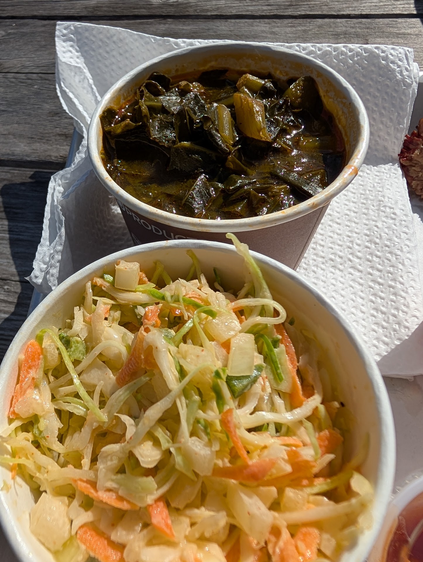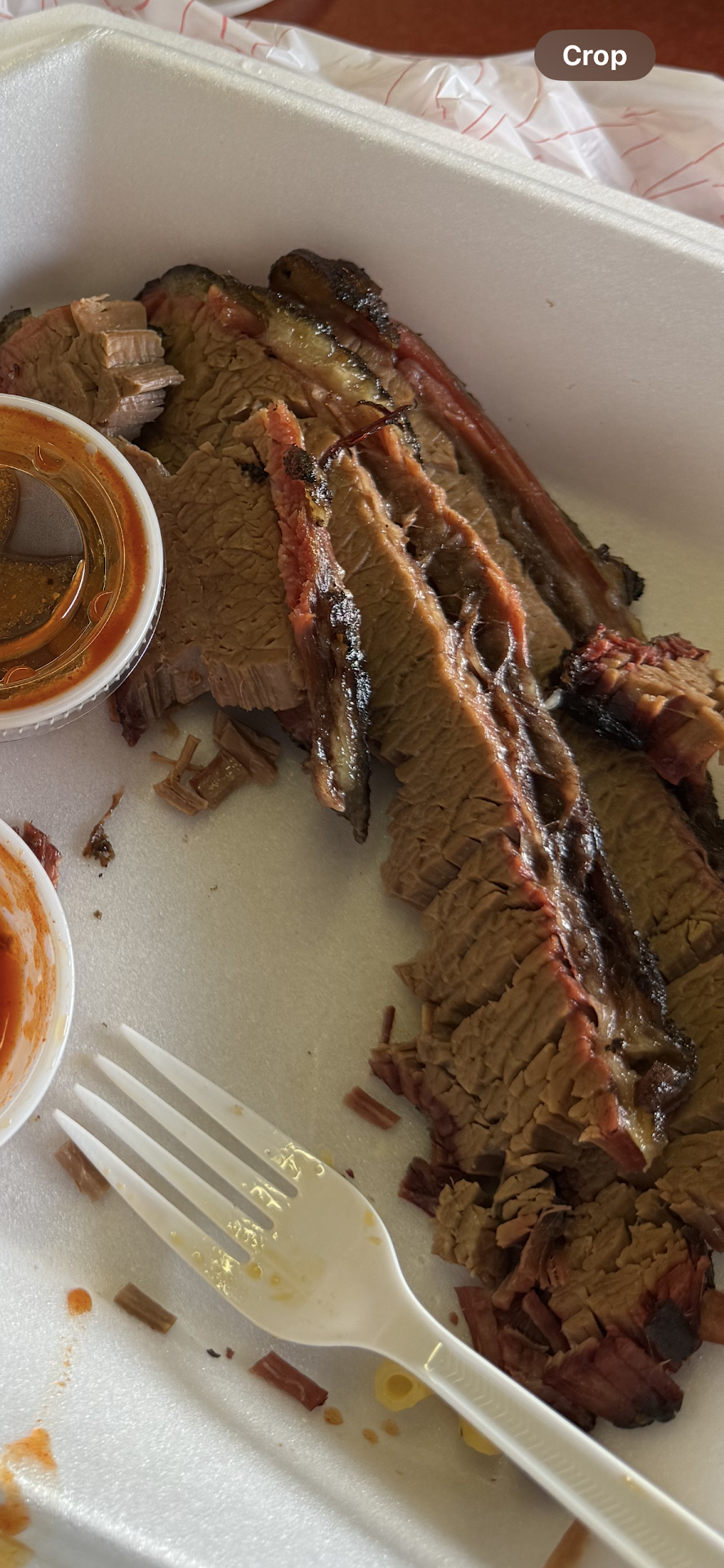 Read moreStopped by to try this place for the first time during lunch. I ordered the brisket plate with macaroni and collard greens as my sides. Meal was around $19 including an added drink before any tip. This was my first time having brisket and I’m not sure I would ever have it again if this is how it’s suppose to be cooked. It lacked any flavor to me and was only edible because of the sauce. The sides I tried were terrible. I opened my macaroni and immediately realized I had been served something similar to boxed mac and cheese except the boxed macaroni from Kraft may have tasted better. The “macaroni” only tasted like noodles and pasta water with absolutely no seasoning or even hint of cheese flavoring. The “cheese” used must be the liquid packaged stuff you get out of boxed macaroni but severely watered down. I tried adding salt and pepper to it and it was still inedible and bland. It was quite literally the worst macaroni I’ve ever been served. The collard greens tasted like they were made with pickle juice for some odd reason and that was off putting to me. They had a kick to them but definitely not the collard greens I am use to. If this is how BBQ is in Texas I’m not jumping to go try it anytime soon and I don’t see myself returning to this restaurant. I ended up throwing the majority of the food away unfortunately. Many people seem to love this place so maybe I just caught them...