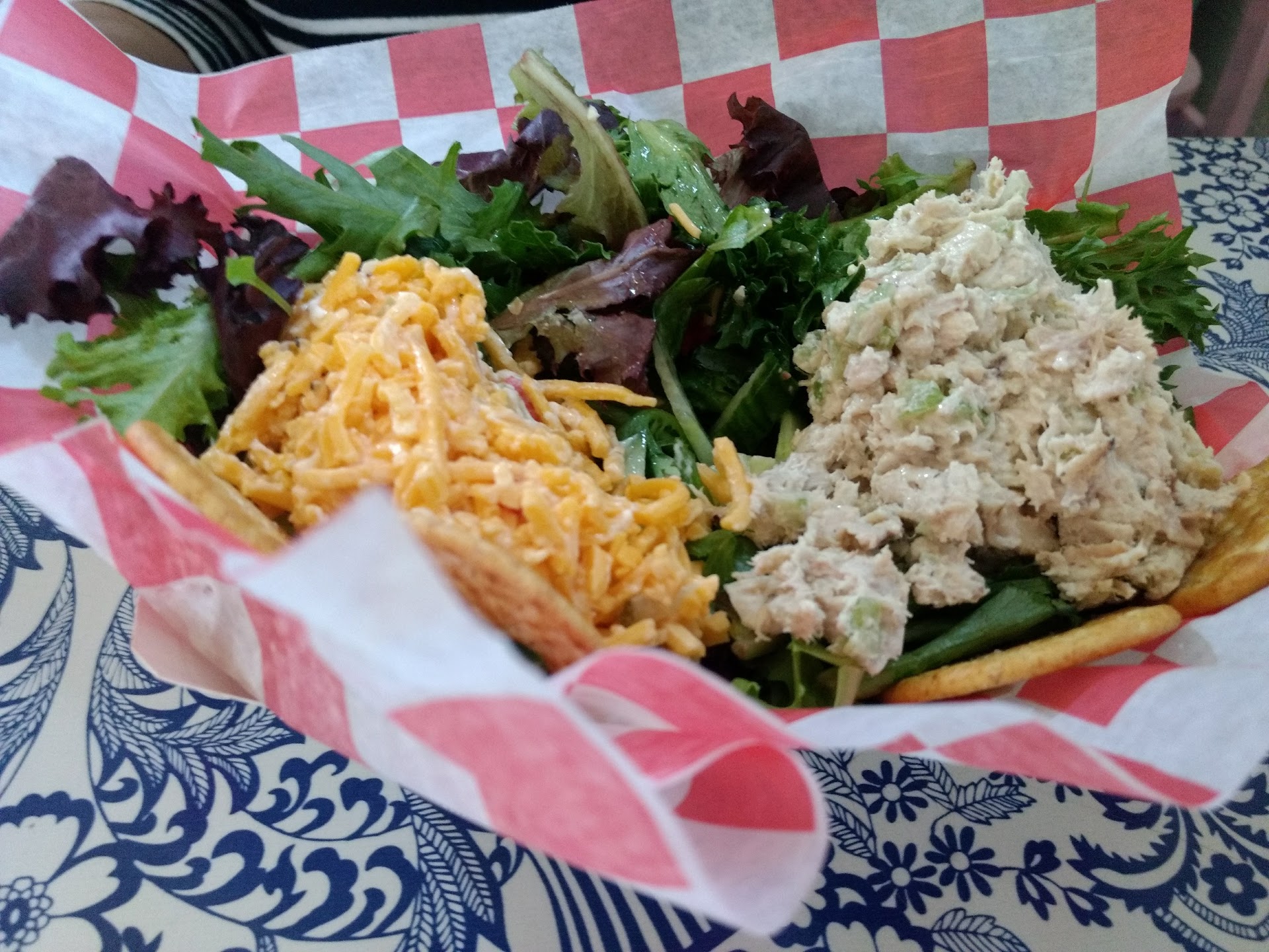 We had the only appetizer - Housemade Pimento Cheese with Wheat Crackers. We also shared both BBQ Plates - Pulled Pork and Pulled Chicken which are accompanied by a soft, warm Roll, Mac and Cheese, and Coleslaw. The Macaroni is soft and well cooked with a good balance of cheese. Coleslaw is fresh cabbage with light dressing. BBQ was moist.