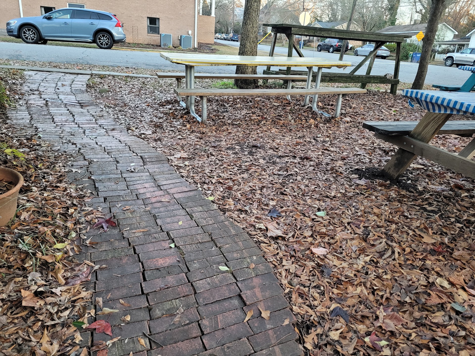 Sadly the bathroom is accessed via the back of the building walking on several uneven surfaces which is not wheelchair accessible. (Surface starts off cement, uneven brick, leaves/grass, and uneven concrete. But if you have light mobility issues the bathroom itself has handicap railings.