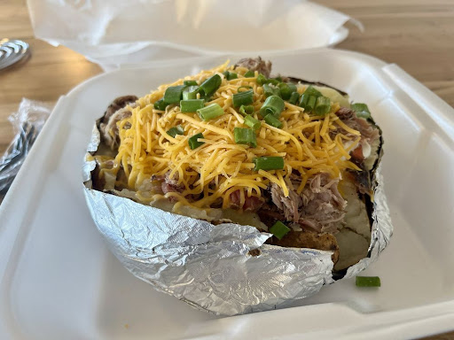 Anyway, I placed my order at the counter for a loaded pork potato, which is my go-to when feeling out a bbq place for the first time. The girl at the register was extra friendly and bubbly and patient with me, so I appreciated that. The self-serve sweet tea I got was fine, and another employee brought my potato to me at the booth where I sat.