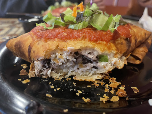 We got - burrito (full), a chimichanga (full), chips and salsa and a salad with the blueberry vinaigrette incredible. Our total was $44. You may initially feel like it’s expensive but I cannot tell you how large these things are. I’m a big eater and I couldn’t finish it all, a half size probably would have done me right and those are around $7.50 instead of $15. I, however, now have lunch for tomorrow, they re-heat well.