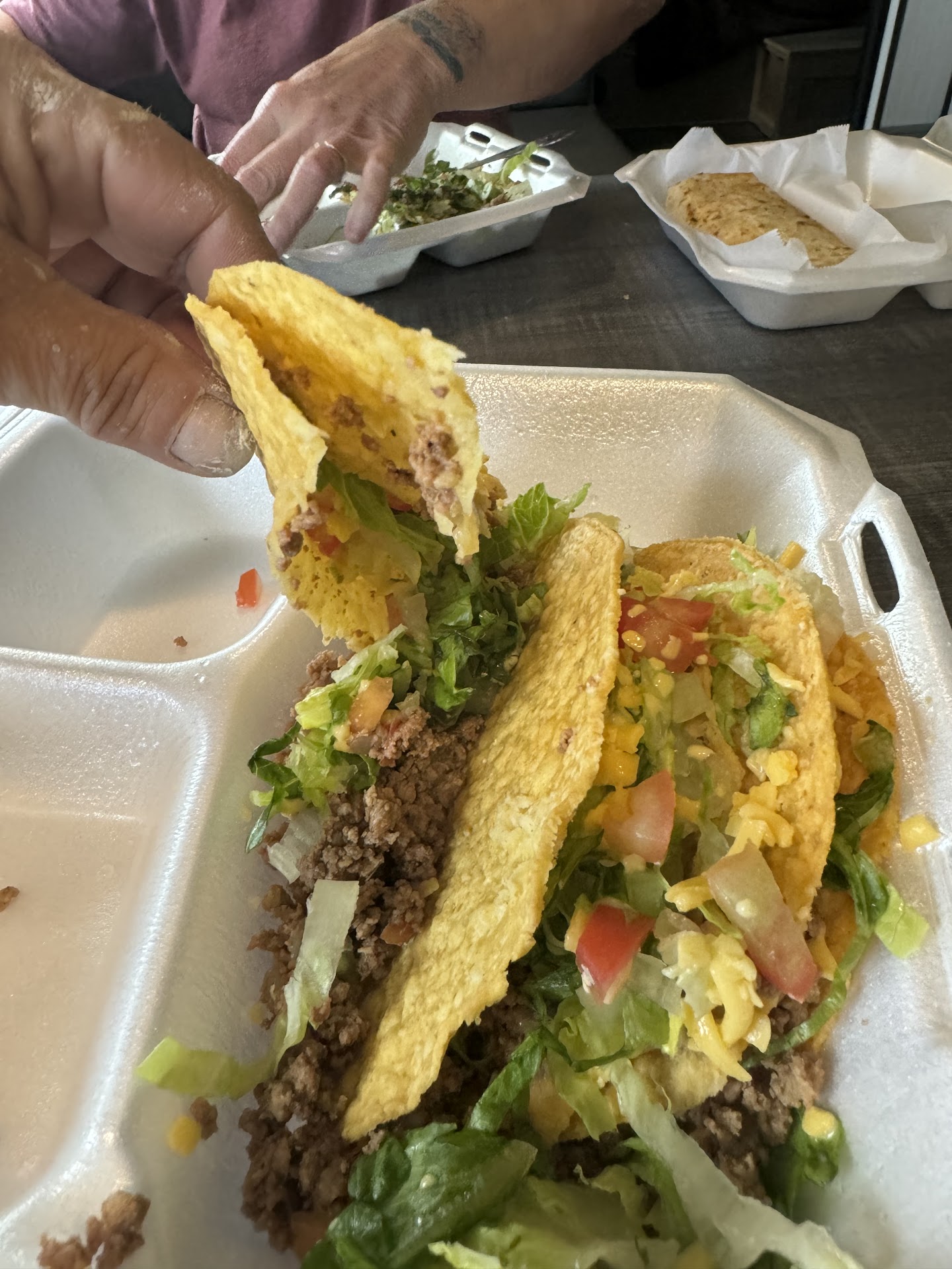 Read moreTo go Order was 6 hard tacos, 2 burrito Supremes, hold the onions, and a side of guacamole grand total $60. - as you can see by The pictures, We couldn’t even pick up the tacos without the bottoms, busting out they were soggy and stale. We ended up getting a half a cup of meat altogether not even enough to make a good taco salad out of it. The burrito Supremes were nothing but beans and cheese wrapped in a flour tortilla and it sucked For $10 each you get a scoop of beans folded in a flour tortilla. Completely overpriced for the quality of food that we received. The ground beef inside the tacos were seasoned well, and I ate them with the chips that guacamole came with. The guacamole itself Was not completely mixed and half the avocado was still in a full form in the bottom of the bowl. No prices posted, nor nothing to look at. It was our first visit there and we will not be back. I feel completely violated financially and taking advantage of by Cinco de Mayo restaurant in Athens. I expected so much more for the price that we had to pay. As for the cashier, She was very nice...