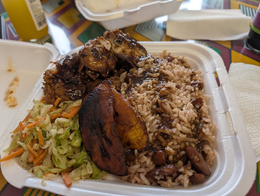 Read moreI ordered the Brown Stew Chicken plate, which came with beans and rice, a cabbage blend, and some plantain slivers.