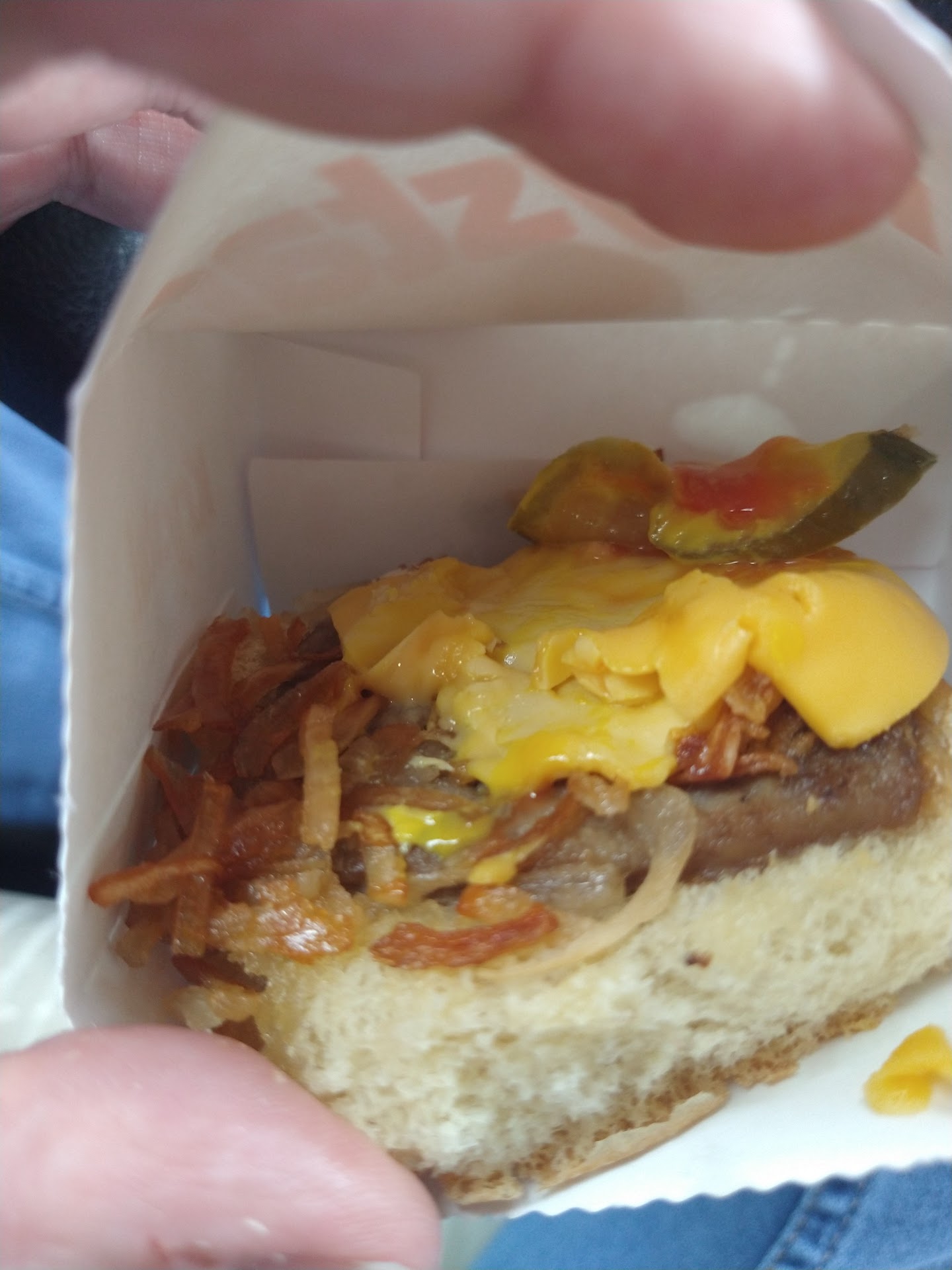 Read moreThe Krystals received a very much needed renovation & revamp some while back (can't remember the duration) with it came newer tastier fries 😀. Last two visits both between Midnight-1 am, the Drive through speaker, Must be getting worn out or in need of repair as the cashier had to ask what my order was again at the window both times. Neither time was any of it made fresh being that late There should be no need in sitting meat Is there not a lot of traffic flowing through there at that time. Both times also have the relation of At least one of the crystal slider buns was extremely hard around the edge. Neither time could I even get the cheese to melt on any of my cheese Krystals. Up until late, i always received freshly made Krystals, So I do hope that the last two times were the last two times they have slacked off & reverted back to the quality of food from the late verison of the store & the fresh well tasting nicely made and warm Krystals I've came to enjoy from this location...