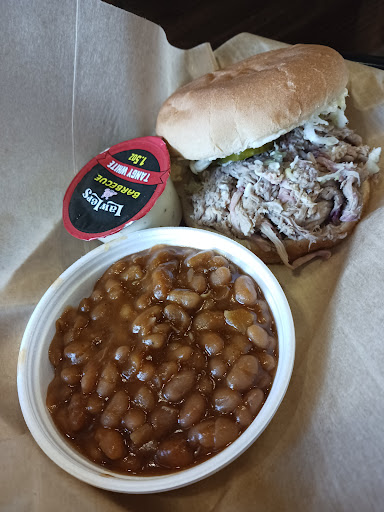 Read moreWe walked in and were greeted with a friendly smile right away. The young, blond cashier was so energetic ad obviously very knowledgeable! She spoke way too fast for my husband but I kept up. She even threw in her own recommendation at the end. It took us longer to decide what to get than it did for the food to come out. We got it to go and she made sure we saw everything that she packed up for us to take with us plus a to go menu. My husband and I left there smiling, she put us in a great mood 😁 We had to make one more stop, where we stayed about 15 minutes. When we got back to the hotel, our potato was still so hot that it burned my tongue (which isn't a bad thing, I just didn't expect it to still be that hot!). The potato was delicious! We got a side of slaw, which is vinegar based and very tart! I loved it but my husband added mayo to his, then he loved it! It was already perfect to me though because when paired with the incredibly sweet red bbq sauce, the two compliment each other perfectly! Then there was the pork... I can't say enough about it except that it was the most tender (without being mushy), juicy meat that we have ever tried! My husband just raved again and again how wonderful it was but I didn't because my mouth was too full to talk much! We didn't care for the white tangy sauce but I can see how it would appeal to others very much. Everything was fresh and great quality! Next time we are going to dine in and try this mysterious chicken that she kept telling us about! This is definitely a place we will want to return to! I really want to give that sampler...