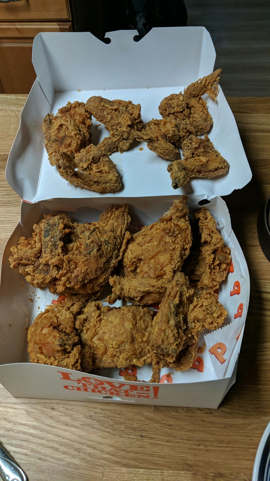 Read moreThe quality of food was awesome as well as the service. We went through the drive thru the other day before our 2 hour trip to help move someone in our family and decided to grab some food real quick. Lately the lines have been crazy but apparently got there before the rush. We had five cars in front of us which wasn't bad. We ordered a five piece tender meal for me and my wife to share. After we paid and right before we left the parking lot we noticed we got the wrong order. My wife went inside showed our receipt and the order we recieved and the girl who helped her was super awesome. For the inconvenience she let us keep the wrong order gave us our actual order plus a few extra pieces of chicken for the trouble and two cinnamon sugar apple pies. The food was ridiculously good and the pies were amazing. Great service, great food. Thank ya'll so much I know the mistake was made and they made up for it ten times fold. Definitely will be going back real soon like....