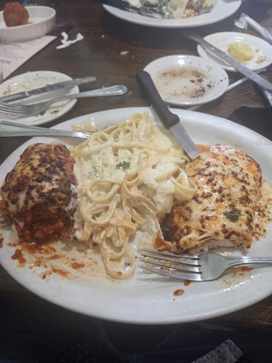 Food - Appears to be processed Restaurant Supply house quality. The Eggplant Parmigian was very thin and had the consistency of tough sliced mushrooms. The Fettuccine Alfredo was good but forgettable. Beef lasagna was the best offering with good flavor, consistency and temperature. The chicken Parmigiano was slightly better than the eggplant. The bread was very good.