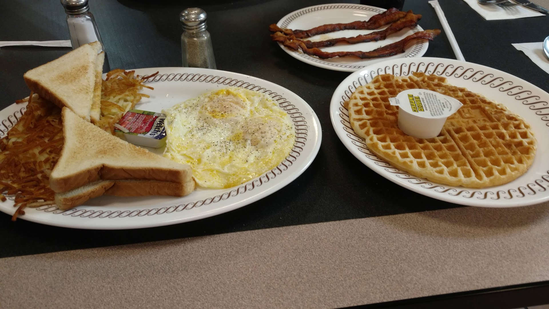 I ordered a waffle, hash browns (all the ways), bacon, eggs, toast, and coffee so strong it gave me flashbacks to my first heartbreak and a vision of my future success. I took one bite of that waffle and saw into the beyond. My dead grandma whispered, “I’m proud of you” from the astral plane.
