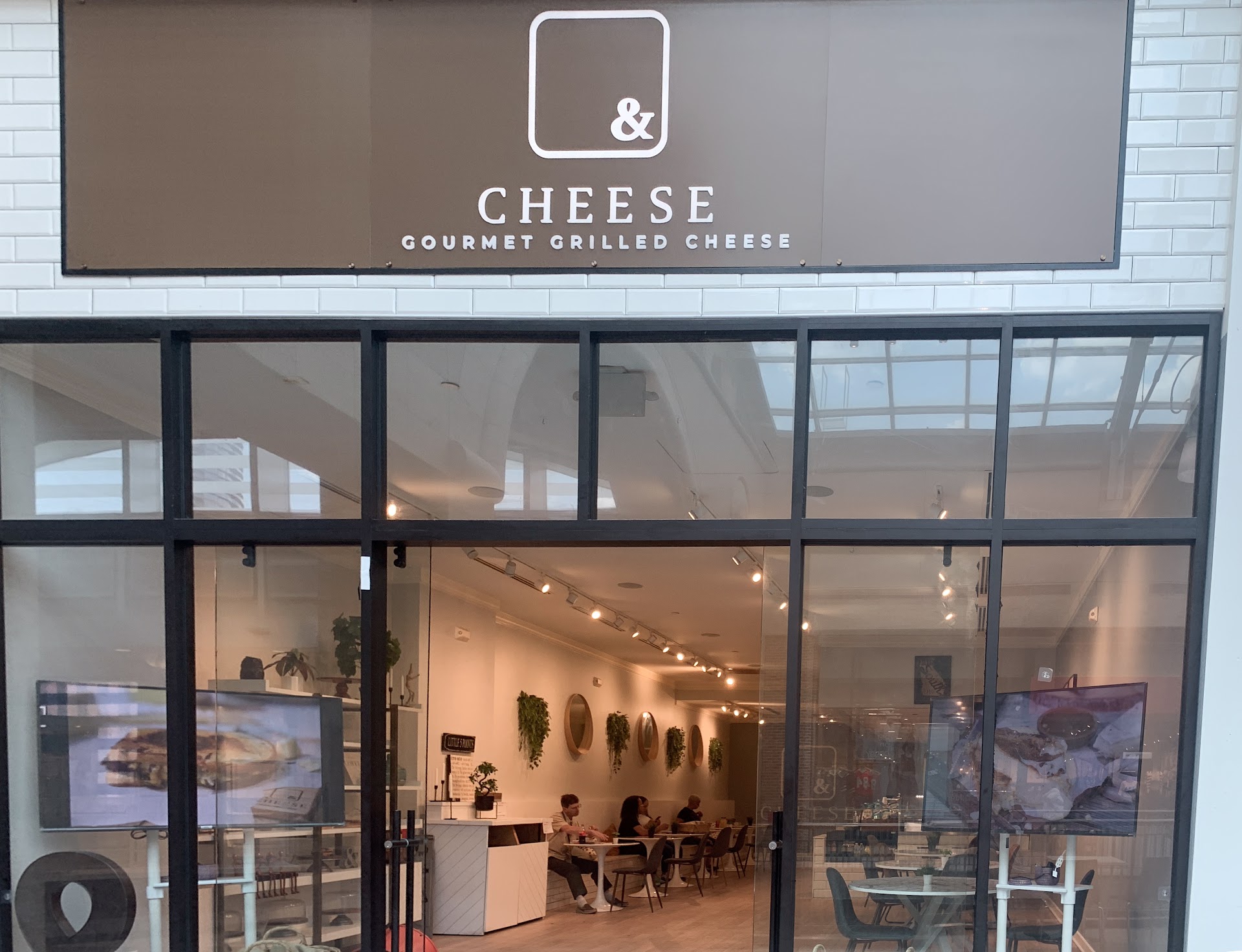 Read more& Cheese is an Atlanta-based eatery specializing in sourdough gourmet grilled cheese sandwiches. It is located in the top level of Lenox Mall closest to Bloomingdaleâs. & Cheese is clean, bright, and comfort-chic. I love the tabletops with maps showcasing popular metro-Atlanta neighborhoods. Customer service was solid. Food and beverage always comes out in a reasonable timeframe.