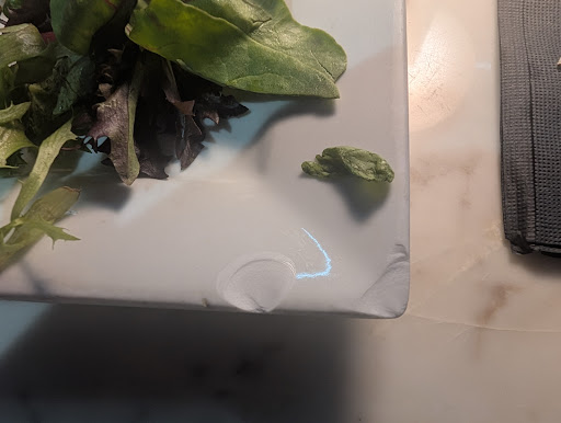 My wife was also served her entree on a cracked plate. The pasta dish was supposed to include zucchini, broccoli, mushrooms and peppers. The only ingredients in it were the peppers and what appeared to be spinach. We let the manager know and her response was âoh, we were out of those ingredientsâ. I feel this is something that should have been told to us BEFORE placing the order. The pasta was severely overcooked and there was barely any chicken in it (even though we paid an additional $7 for it).