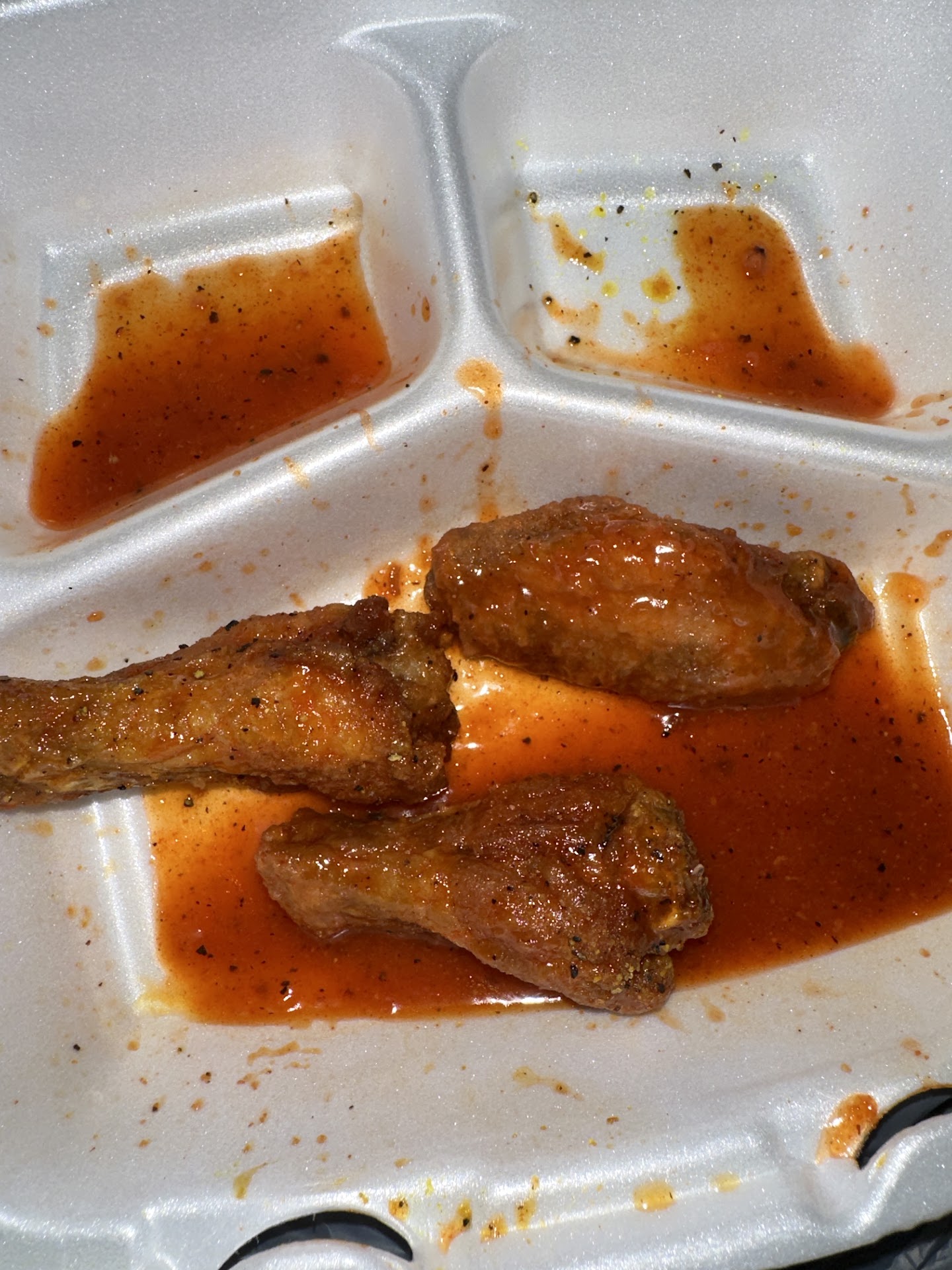 Ā Ā Ā Read moreI try and keep trying to eat at this location but Ive had it im done with this location I only got fresh wings from them once now like I said when I try and give them the benefit of doubt everytime they prove me wrong. the wings are never fresh even when you request for fresh wings they donāt drop fresh wings they drop old wings to have you think that they are fresh when I know the the difference between OLD and FRESH chicken wings because one of the reasons they are dryyyyyy and hard and not juicy and chewable. Fresh wings was requested but this is what I got smh Iām done with them I wonāt be throwing my money away with them anymore. You can tell by the pic that the wings are old chicken that just been sitting...