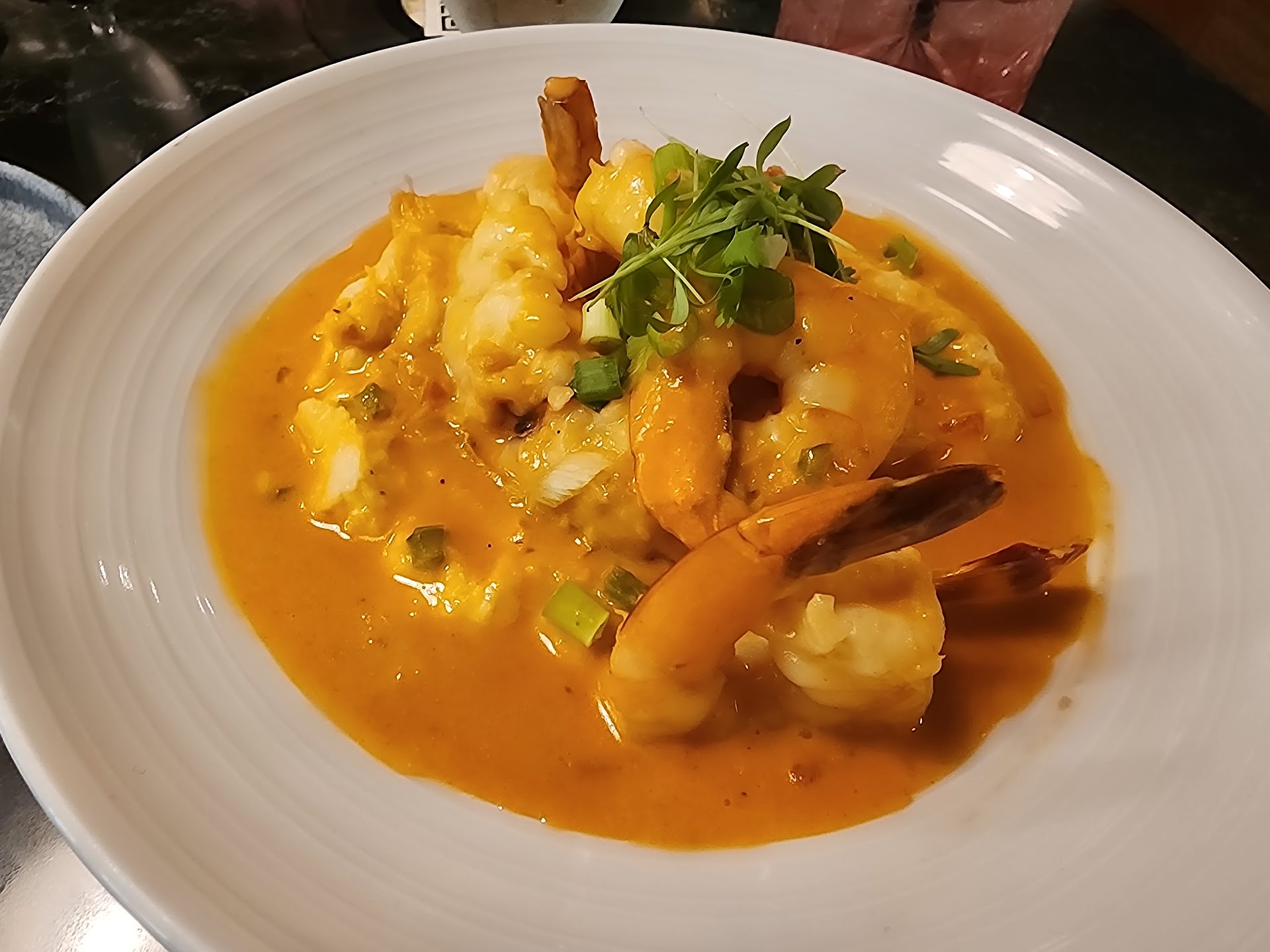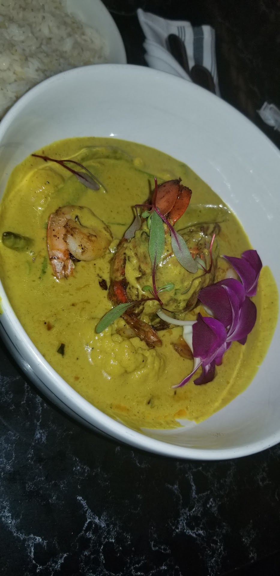Read moreVisited Saturday evening with my family. It was a little difficult to find, as it's located on the backside of a building and there wasn't much signage. We had a 7pm reservation and although our party was late, they still honored our reservation. Until the rest of the party arrived, my fiance and I sat at the bar. I ordered a 4B Reservation, he ordered the Clase Roja, and then we got the oyster mushrooms as an appetizer. Both drinks were good with a nice pour size. The oyster mushrooms were good but could've been fried a little harder. The rest of our party finally arrived, so we closed out our tab, and joined them. There's a large table in the front with a card game that asks questions, and we answered some of those until our table was ready. We were greeted by our server and given a quick run down of the menu. While we looked over the menu from the QR code, we were offered water; tap, still, or sparkling. We placed our orders and I also ordered another drink, which was delivered to me by the bartender. They have an open concept kitchen, so while we waited for our food, we were able to see some of the other food being prepared. Below is the food ordered and the individual feelings of the food. Jerk chicken salmon - good, but portion size wasn't good for the value Cesar salad - good, but didn't like the fact that she had to chop her own salad. The salad looked good to me, but I understand her thought process Seafood curry - good, but rice was undercooked Vegetable curry (me) - good with plenty of veggies, but rice was undercooked. If you like spicy, I recommend asking for it like I wish I had. Red snapper - he loved it and had no complaints